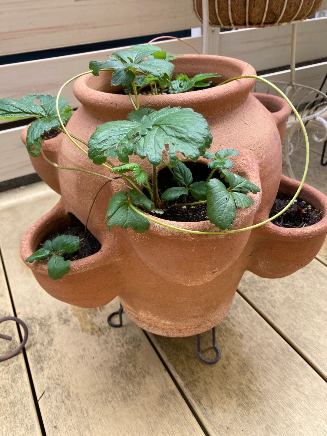 テラコッタの植木鉢です 港北の園芸店で約10,000円で購入しました。 ・色:テラコッタ ・サイズ:高さ約40 cm、直径約40cm かなり重いです。 これからイチゴを育てたい方にお勧めな商品です。最大8株植えることができます。写真にあるように1つ植えてランナーをどんどん伸ばして増やすことも可能です。 ご希望のある時のみ土等全て出して空の状態でお渡しします。基本この写真にある状態でお渡しします。コメントしてください。 ご不明点があればお気軽にご連絡ください