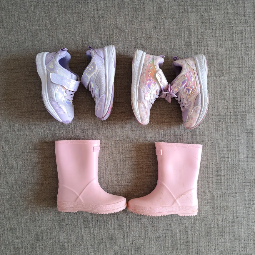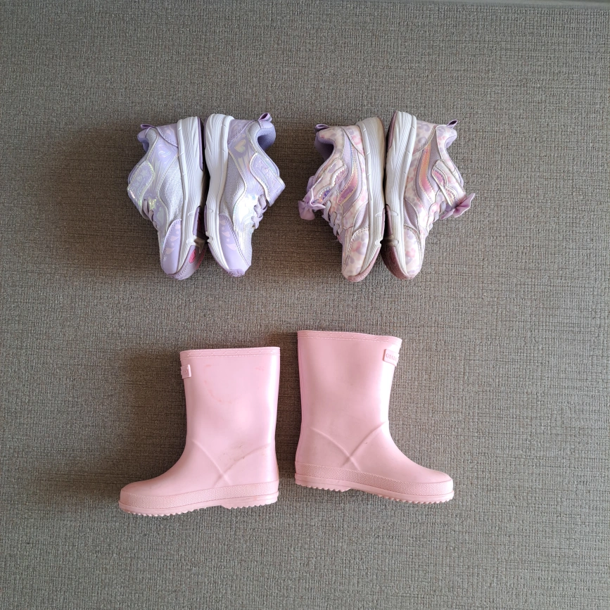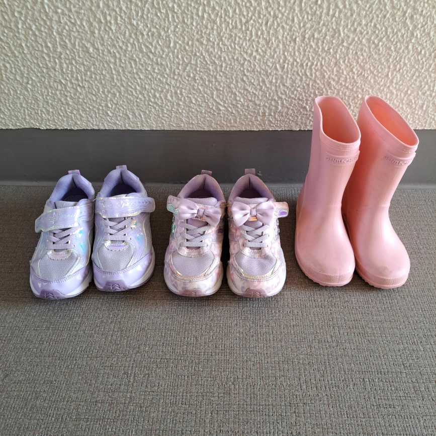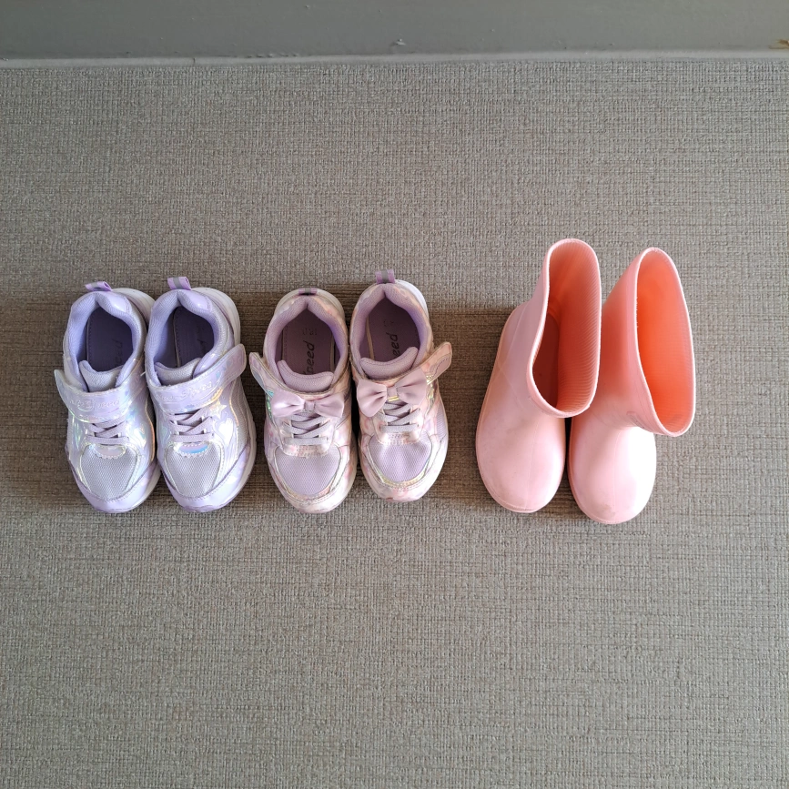 靴2足と長靴1足です。 ・靴(Neo-Speed) サイズ 2足とも 18cm 1足は洗っています。 中敷きの裏に名前を記入しています。 ・長靴 サイズ 27(16cm) 洗っていません。 長靴は軟らかいため曲げたり出来ます。 バラ売りは考えておりません。 中古品のため傷、汚れがあります。 神経質な方のご購入はお控え下さい。 スニーカーとレインブーツのセットです。 梱包せずにそのままの状態でお渡しします。