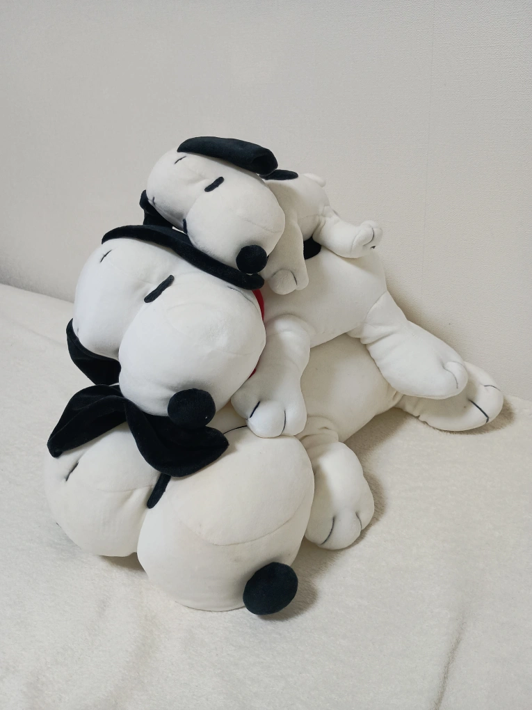 スヌーピーの大きめのぬいぐるみ(3体1組)です。 引越しするのでお売りしたいです。 ・サイズ   高さ:40cm   幅 :25cm   奥行:45cm ・カラー:ホワイト、ブラック ・状態   少しクリーム色になっている箇所有り   飾っていた物なので臭い等はありません ・購入時期:6〜7年前 ※中古品であることご了承ください