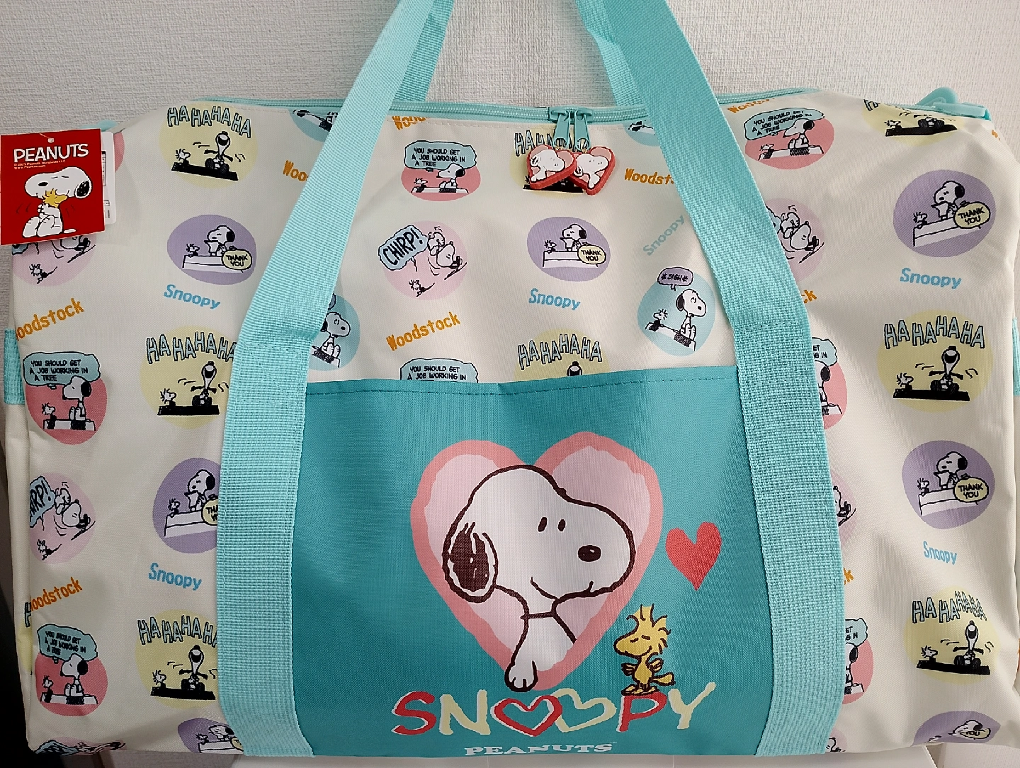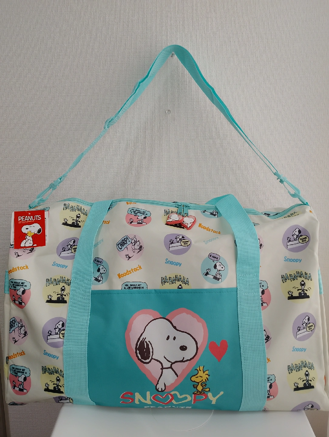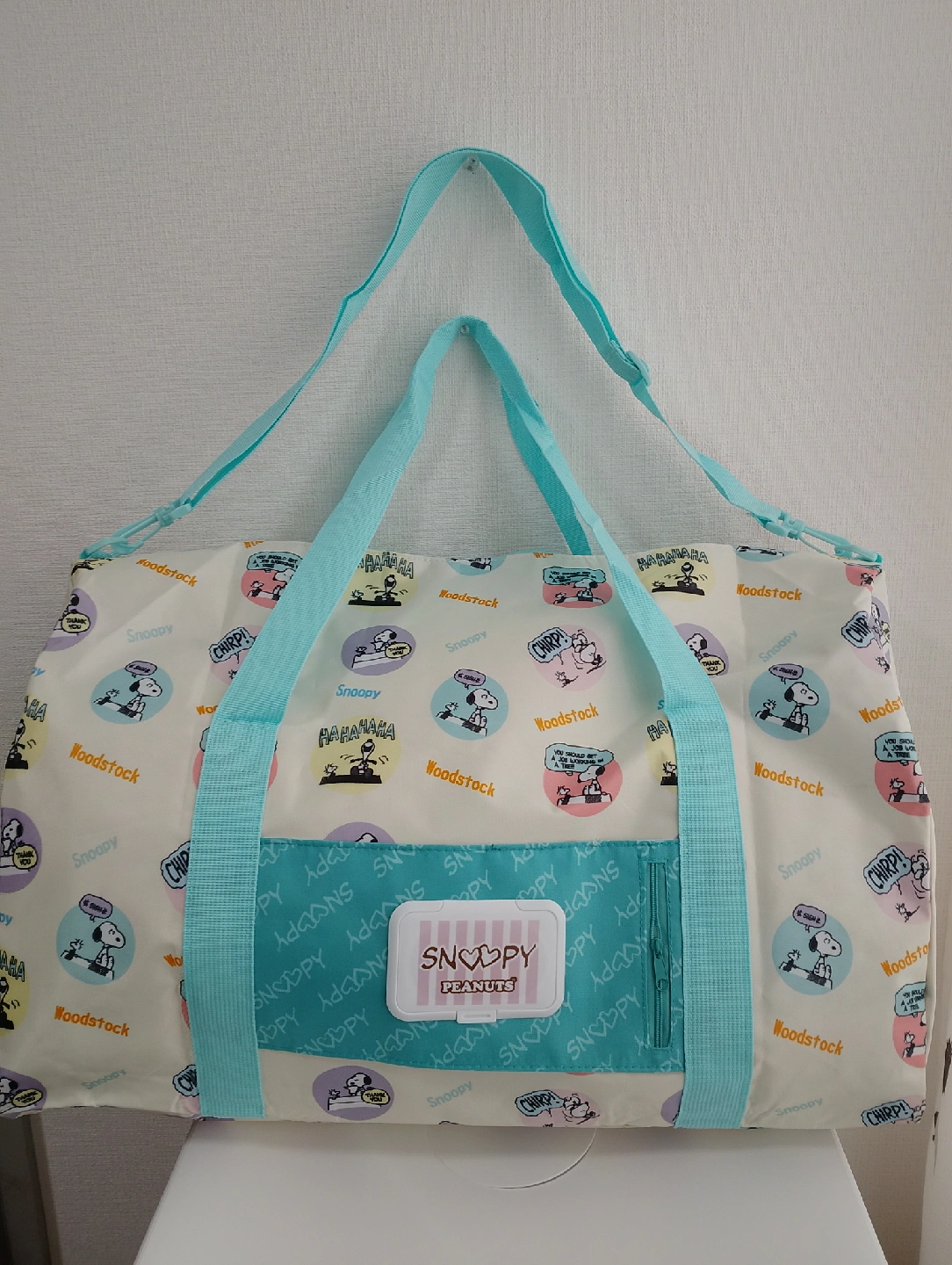 スヌーピー超ドでかっBigボストンバッグ 収納力バツグン ウェットティシュが収納できてバッグに付いてるフタを開ければすぐにウェットティシュが取り出せる便利機能付き サイズ W約53cm H約40cm D約21cm