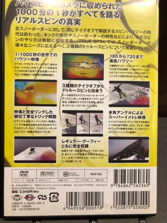 すべて見る「DVD TRUE SPIN」 定価: ¥ 2800 3種類のテイクオフ、180から720までのフロントサイド、バックサイド両方向の20トリック収録てす。 レギュラースタンスの反転でグーフィースタンスのイメージも湧きやすいかと。 初心者、子供が見てイメージしやすいかと思うので有効にお使いくだされば嬉しいです。ご希望の方はお気軽にご連絡ください。