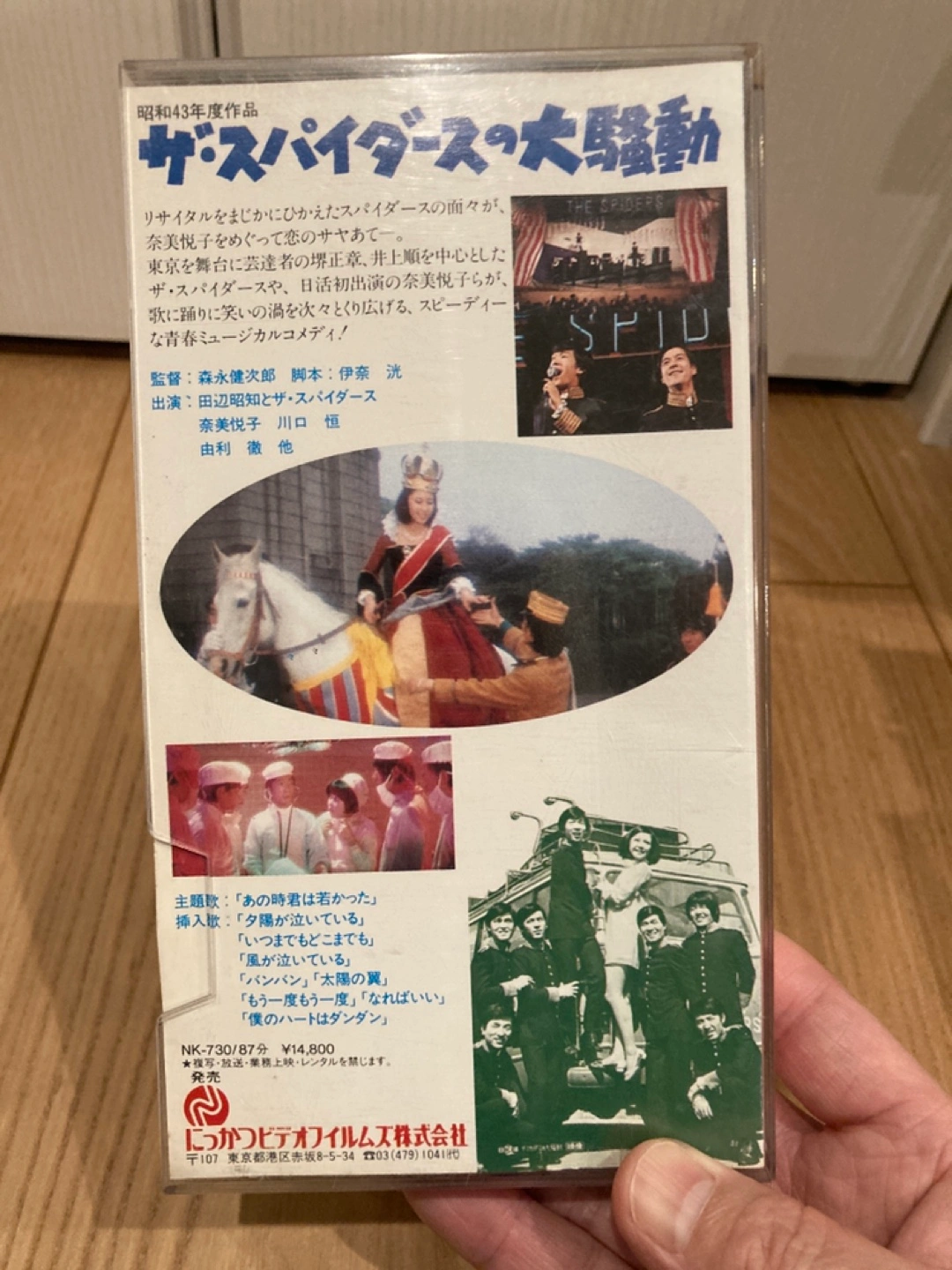 スパイダースの大騒動 VHSです。 定価14800円! びっくりですね^_^ マチャアキ、かまやつ筆頭にみなさん若いです。 よろしくお願いします。