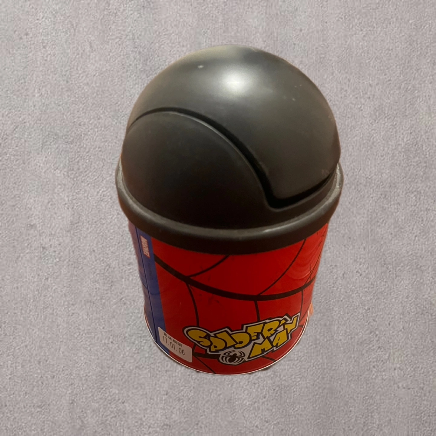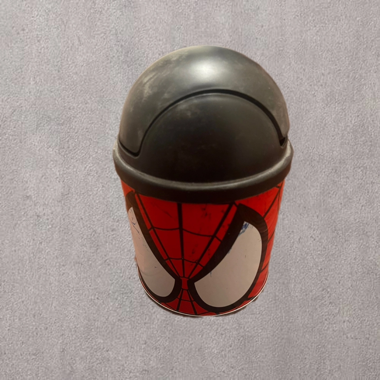 あたたかさスパイダーマンミニゴミ箱 デスク上など場所を取らない便利な大きさ! デザインも可愛く蓋が回転式なので 臭いも大丈夫! 高さ17cm 直径11.5cm