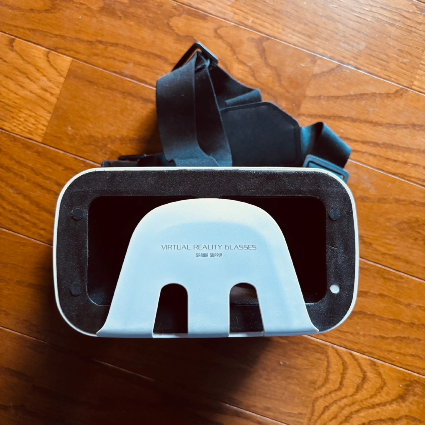 スマホをはめて使うタイプのサンワサプライのVRゴーグルです。 ゲーム用に買ったのですが結局あまり使わず保管してありあまりにももったいない為お譲り致します。 出品にあたって顔周りの部分をクリーニングしたところ合皮の部分が取れた為剥がしました(クッション部分はそのままのため気になさらなければ問題無くお使いいただけると思います。 あくまでも個人使用保管品ですのでご理解いただける方のみでお願い致します。 受け取りに来ていただける方でお願い致します。 きちんとスピード感を持って返信頂ける方のみお問い合わせ下さい。