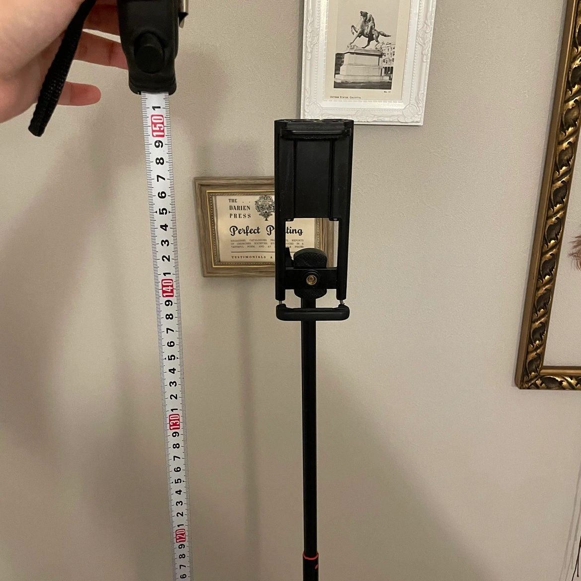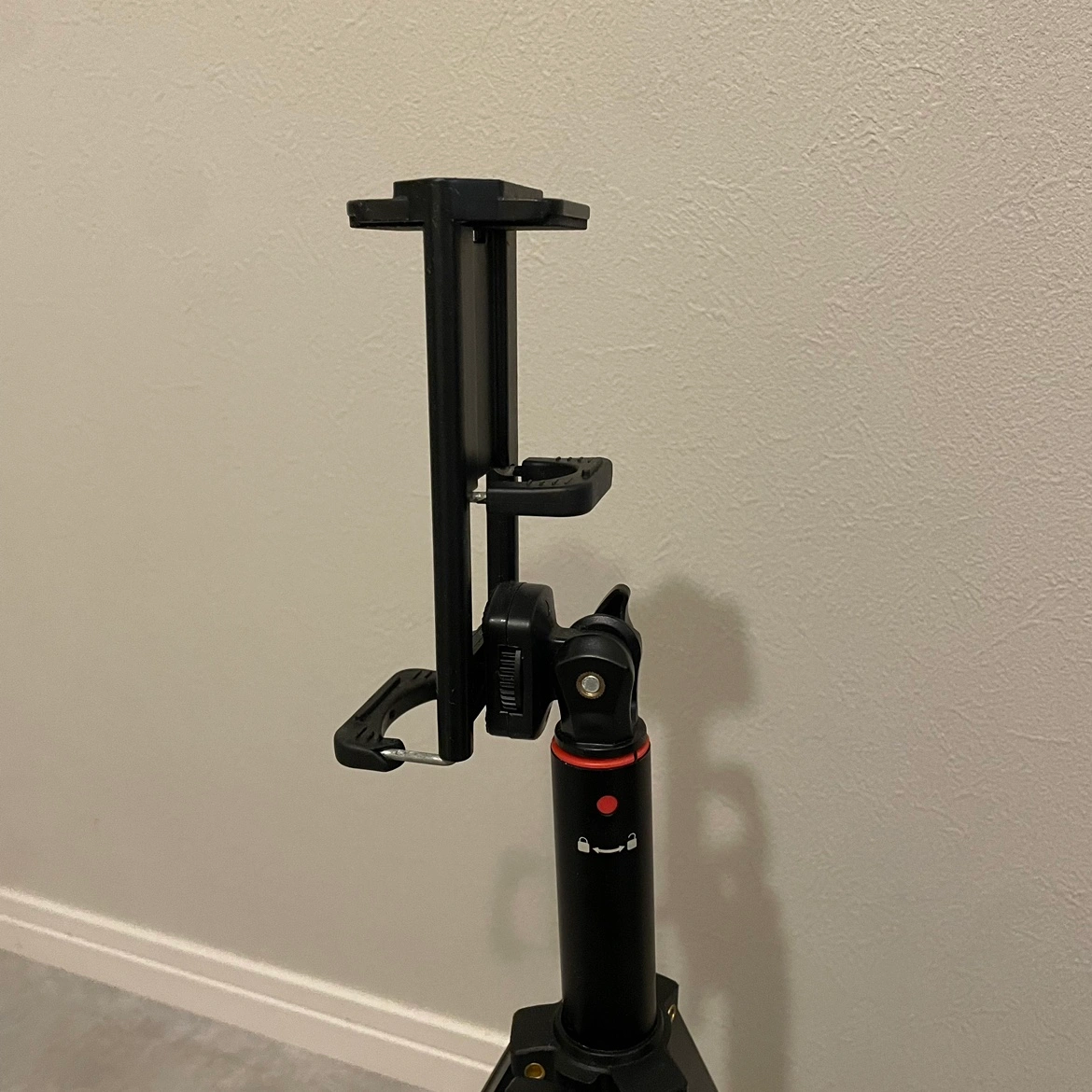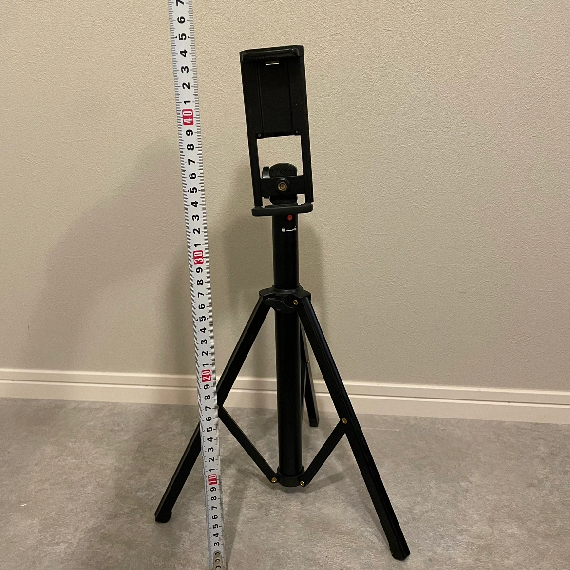 高さ調整可能な黒のスマホ三脚、取り外し可能なホルダー×2付き。 - タイプ: 三脚 - 色: 黒 - 調整機能: 高さ調整可能(40cm-150cm) - スマホホルダー: 取り外し可能 - 対応機種: スマートフォン フラフラしたり、目立つような傷等ありません。