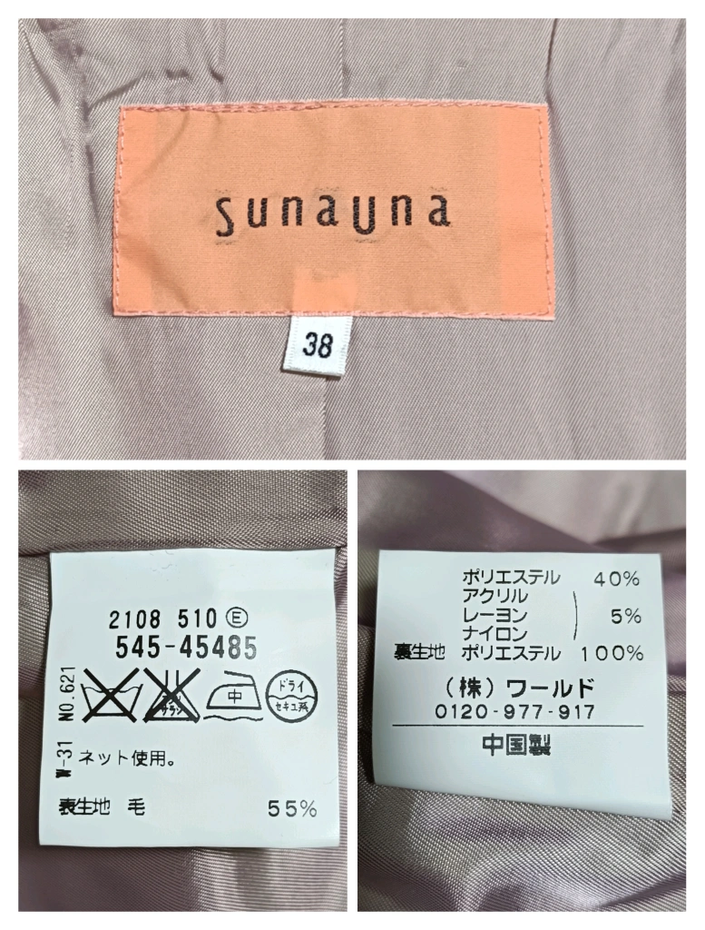#joymaxお得なプロフへ #ゆうの古着屋さん_レディースアウター □商品名□ 美品 ショートコート アウター ネイビー 38 レディース □ブランド□ Sunauna スーナウーナ □表記サイズ□ 38 □実寸サイズ(cm) □ 着丈:56 肩幅:37 身幅:45 袖丈:60 ※実寸につきまして多少の誤差はご了承ください。 ※表記サイズだけではなく実寸のサイズをご確認ください。 □カラー□ ネイビー 紺色 □素材□ 表生地:毛55% ポリエステル40% アクリル、 レーヨン、ナイロン5% 裏生地:ポリエステル100% □コンディション□ 目立った汚れやダメージなど特にございません。 ※汚れはできる限り写真にて掲載しております。まずは画像をご確認ください。 出品一覧→ #joymaxお得なプロフへ どうぞよろしくお願い致します。 □商品管理番号□ T8-O-4594