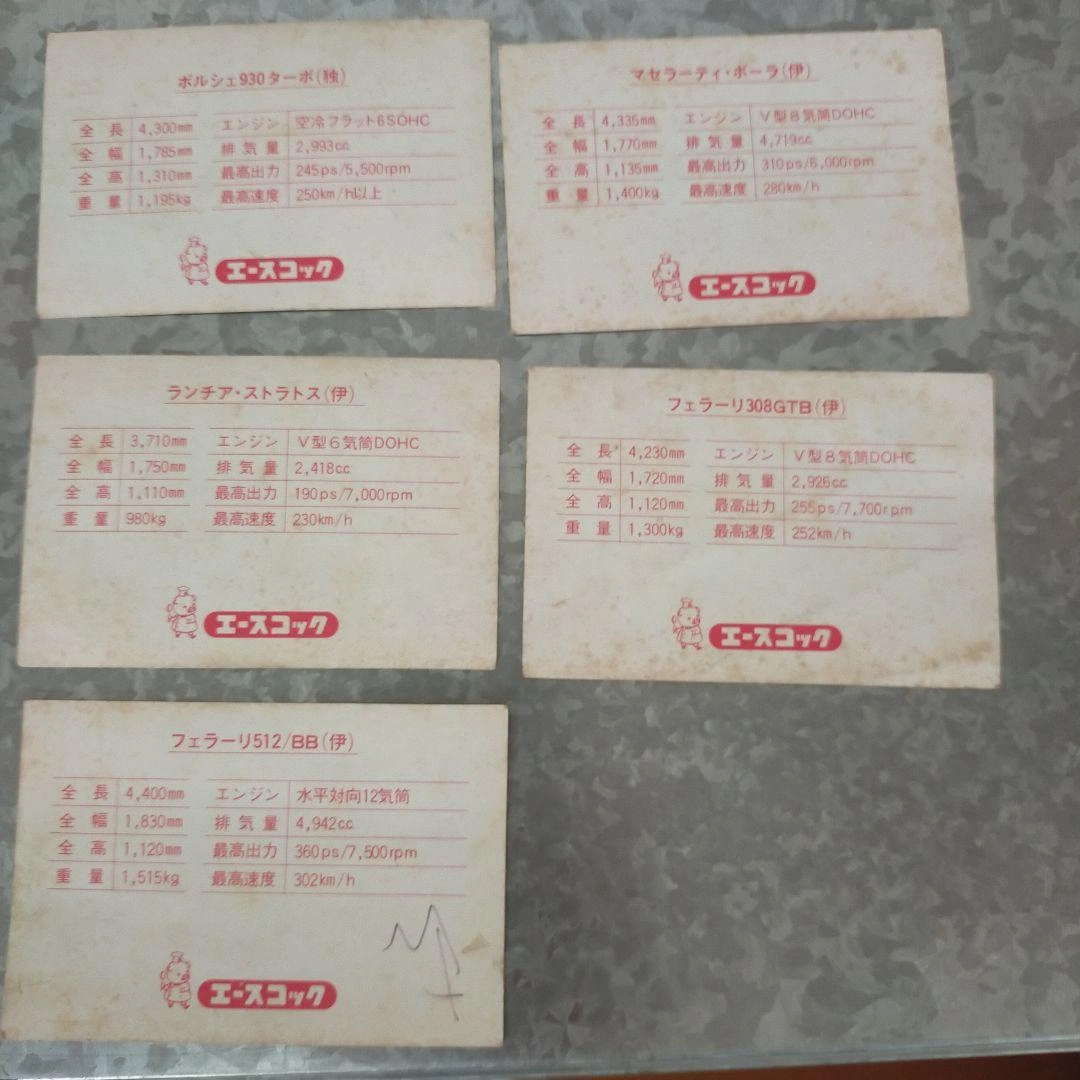 当時物で希少。エースコックウインナーだったかな?おまけのスーパーカーカードです。定年劣化と個人保管のため神経質な方はご遠慮ください。タバコペット無しです。ご希望の方はお気軽にご連絡ください。