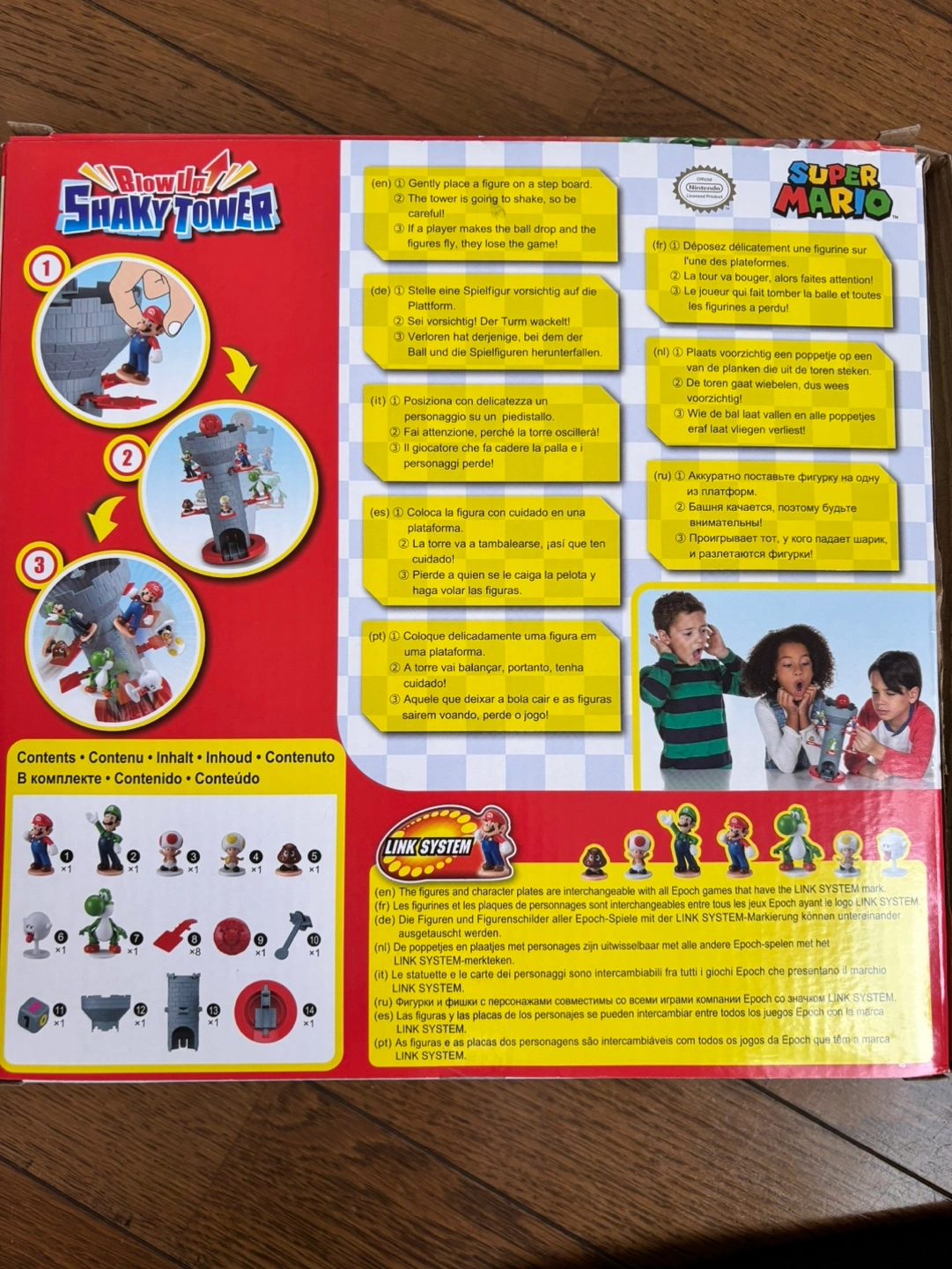 あたたかさバランスを崩さないようご注意ください。タワーが「爆発」してしまいます。商品には 7 体のコレクター フィギュアが含まれており、他の Epoch Games スーパー マリオ™ おもちゃやファミリー ボード ゲームと互換性があります。 Careful not to lose balance or the tower will "blow up"! Product features 7 collectible figures, compatible with other Epoch Games Super Mario™ toys and family board games!