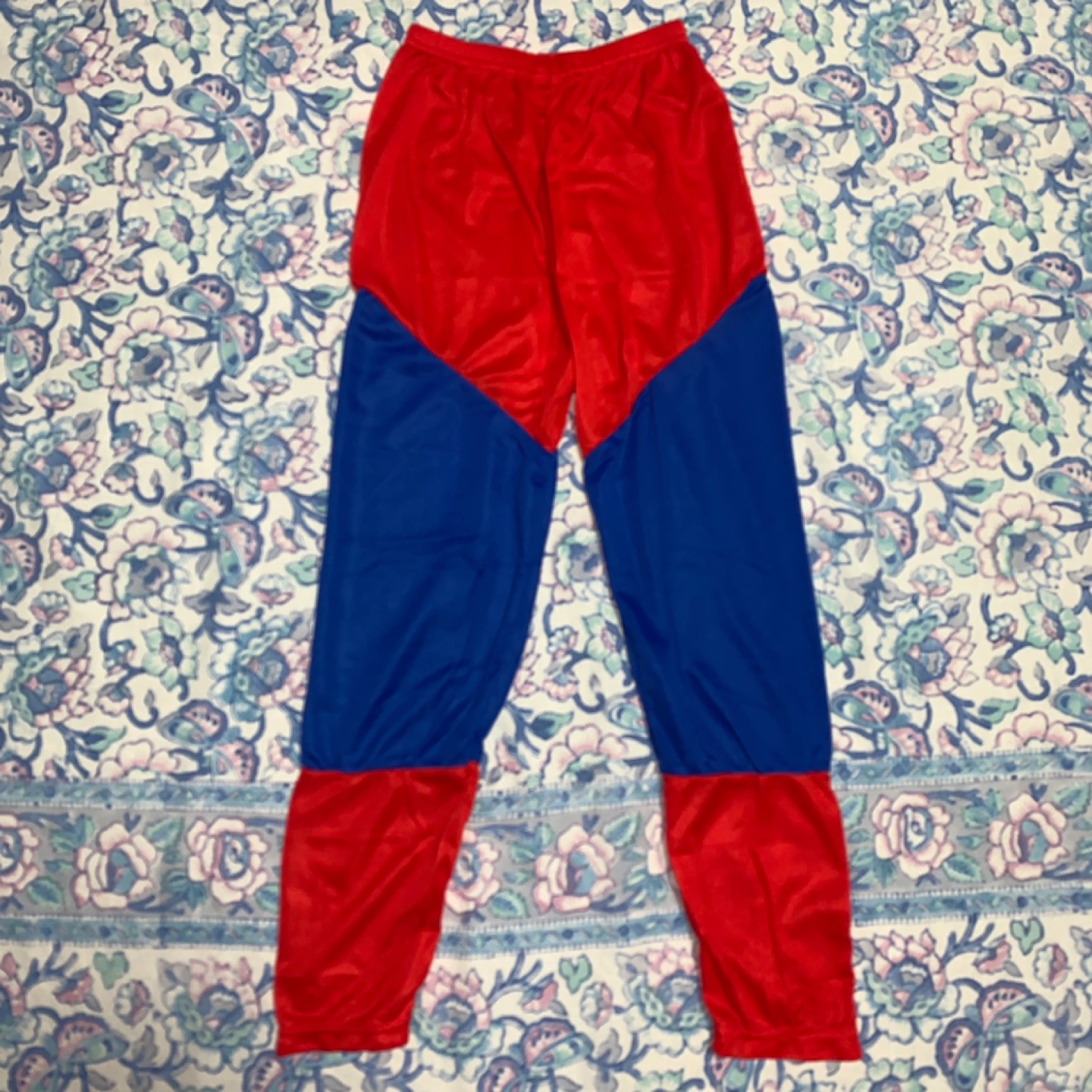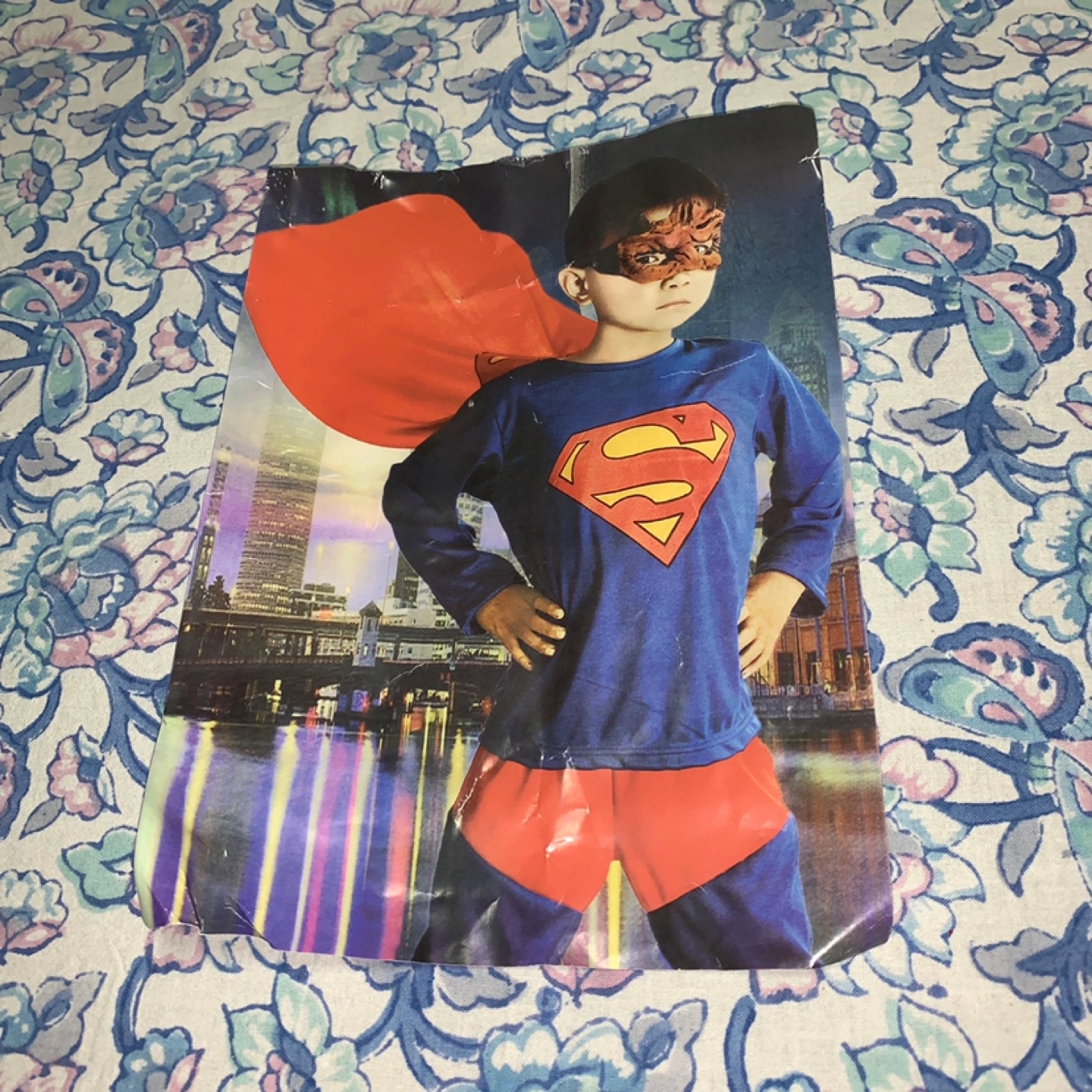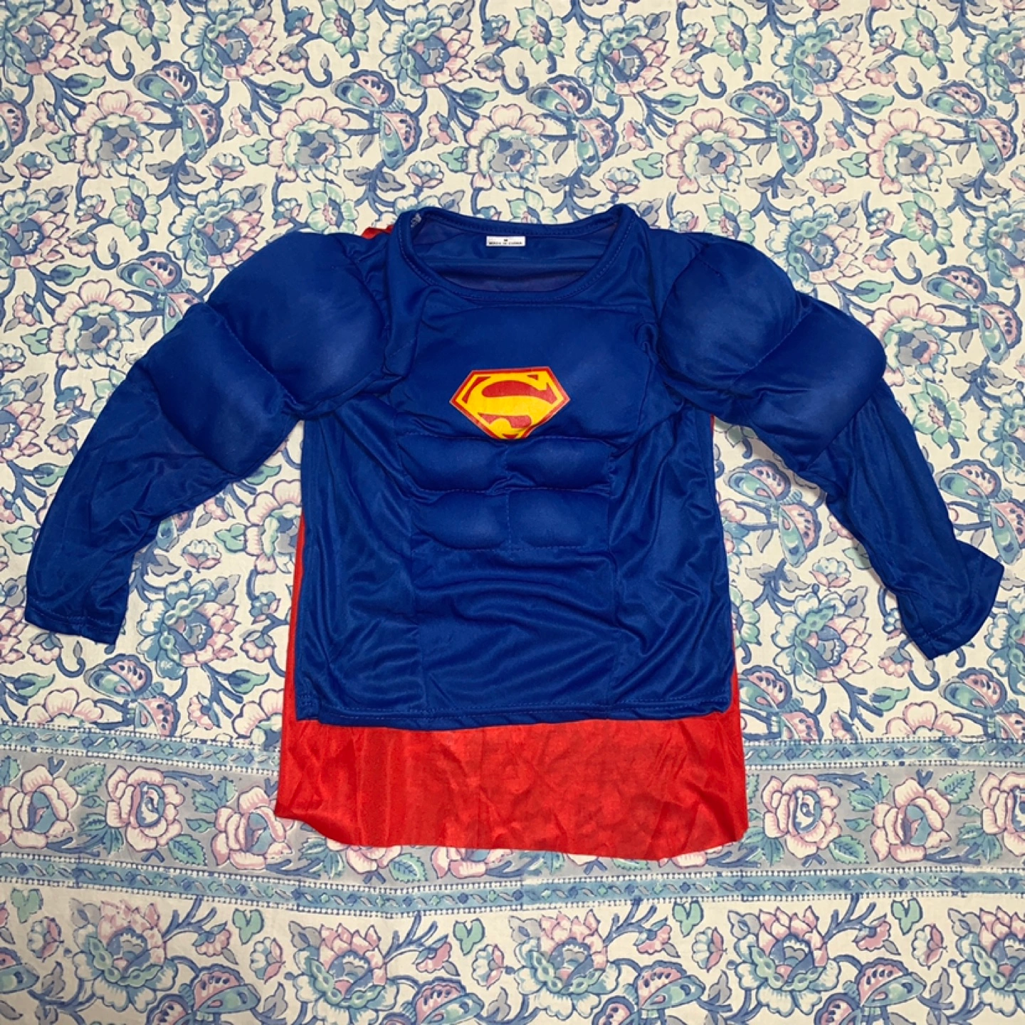 【商品概要】 人気キャラクター風のスーパーヒーローコスチュームになります。 トップス・パンツ・マントが一体型になったセットアップ仕様。 ハロウィンやイベント、パーティーの仮装にぴったりです。 【サイズ】(平置き実寸 Mサイズ表記) 上(トップス) ・肩幅:約27cm ・着丈:約43cm ・身幅:約32cm ・袖丈:約35cm 下(パンツ) ・ウエスト:約39〜60cm(ゴム伸縮あり) ・太もも幅:約28.6cm ・股上:約72cm ・股下:約45cm ・裾口:約7cm マント(トップスに縫い付け) ・幅:約46cm ・着丈:約46cm 【状態】 ・大きなダメージはございません。 ・多少のシワはございます。 かなり薄い作りとなっており透けます。 【おすすめポイント】 ・胸部に筋肉風のあんこ入り立体デザイン。 ・マントは縫い付け仕様でズレにくい。 ・伸縮性のある素材で着やすい。