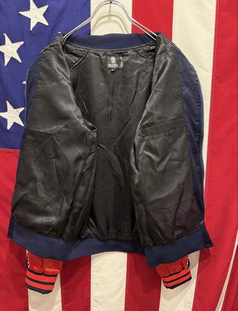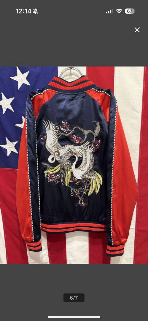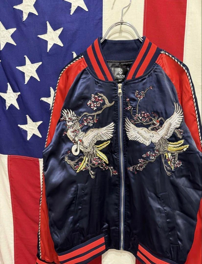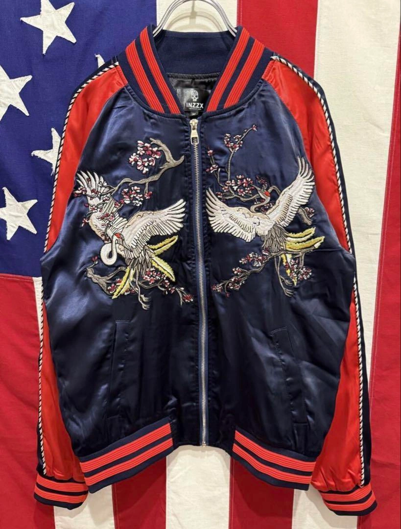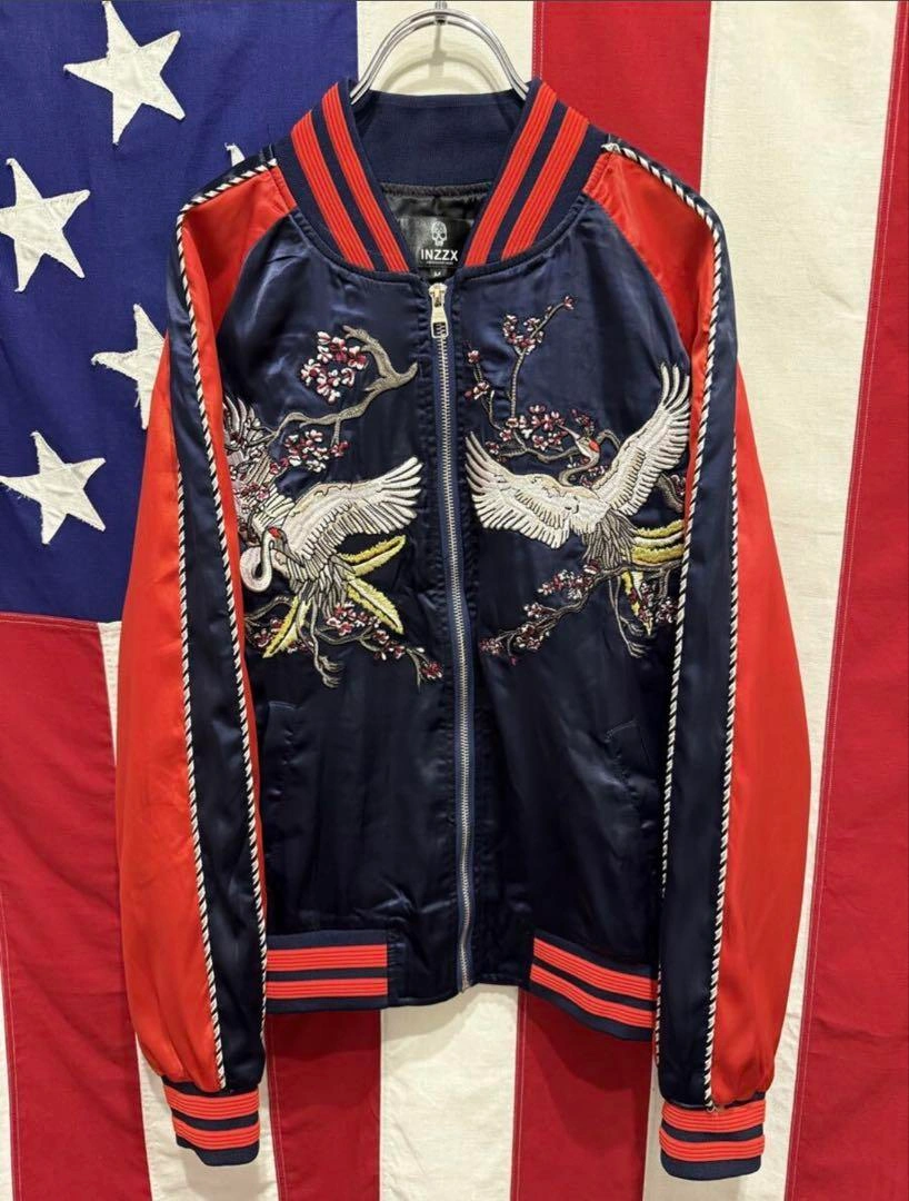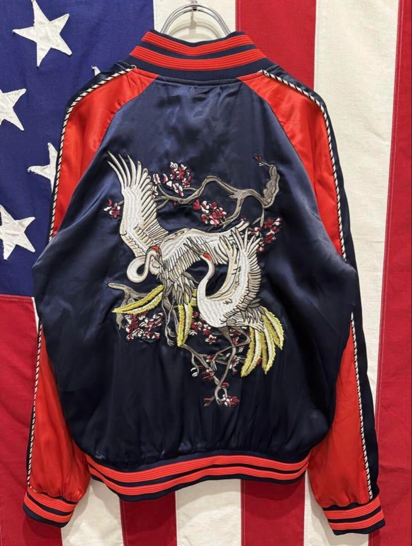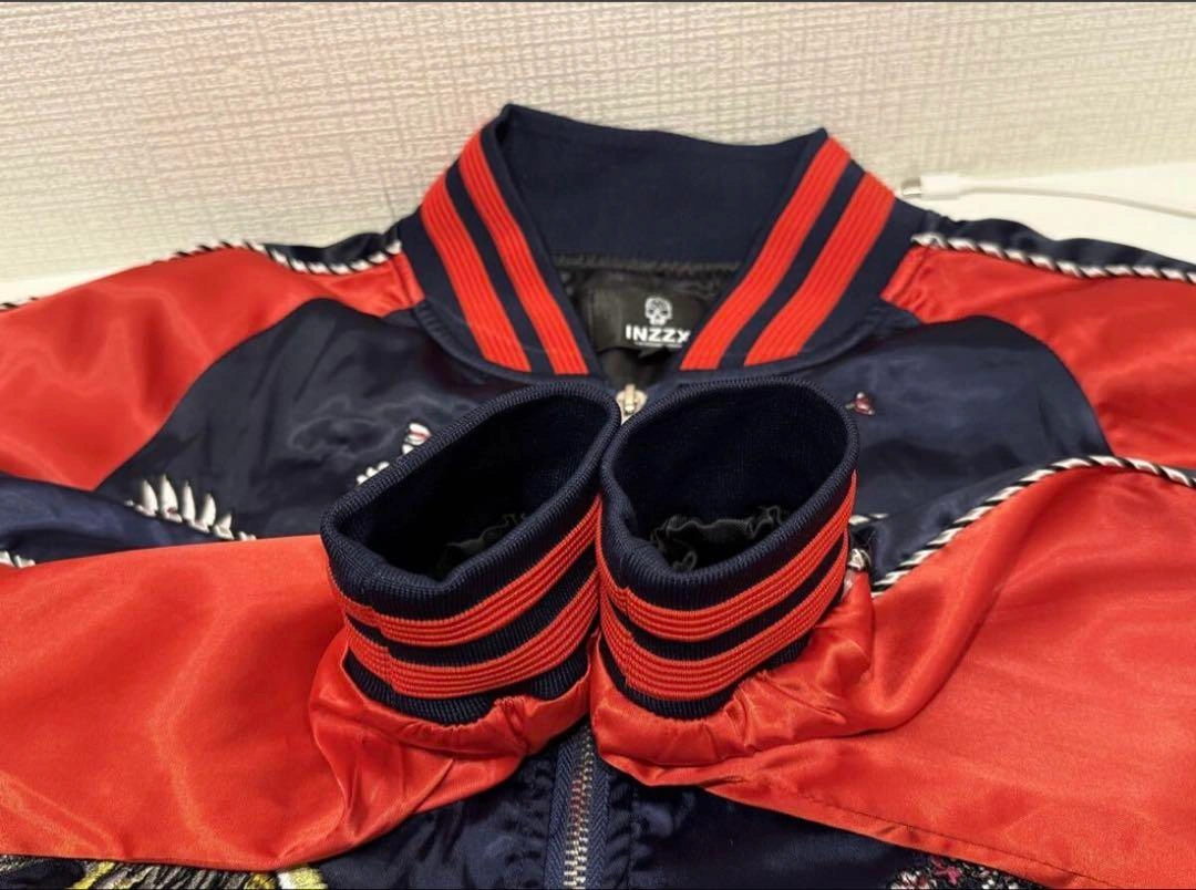 スカジャン スーベニアジャケット ブルゾン ジャンパー アウター ジップアップ フルジップ 袖ライン 袖リブ 裾リブ リブライン 両面刺繍 鶴 鳥 梅 花 フラワー ネイビー 紺 レッド 赤 1. 息をのむ「両面・超精密刺繍」デザイン 前面と背面に施された豪華絢爛な鶴と梅の和柄刺繍にご注目ください。特に背面の雄大な二羽の鶴は、まさに熟練の職人技。 2. 絶妙な「ネイビー×レッド」の最強配色 光沢のあるネイビー(紺)をベースに、袖とリブに鮮やかなレッド(赤)を大胆に切替。クラシックなデザインでありながら、現代的なパンチの効いたカラーリングが実現。ジーンズにも、スラックスにもハマる、まさに着回し力最強の配色です。 3. トレンドを捉えた「Mサイズ」と絶妙なシルエットストリートでもカジュアルでも、抜群に使いやすいMサイズ。リブの効いた美しいシルエットは、インナーを選ばず、さっと羽織るだけでサマになります。 サイズ M 肩幅 (ラグランスリーブ) 裄丈 82cm 身幅 49.5cm 着丈 58.5cm 素人寸法になりますので多少の誤差はお許しください。 状態:USED 多少使用感ございますが、その他大きなダメージ無くまだまだ着用可能かと思います★ 使用感はありますので画像にてよくご確認をお願い致します。 #スカジャン #スーベニアジャケット #和柄刺繍 #鶴刺繍 #梅刺繍 #鳥柄 #INZZX #ブルゾン #MA1 #リバーシブル #両面刺繍 #古着MIX #ストリートファッション #アメカジ #メンズファッション #ネイビーレッド #紺赤 #トレンドアウター #Mサイズ #ヴィンテージファッション #サテンジャケット #光沢 ご希望の方はお気軽にご連絡ください。