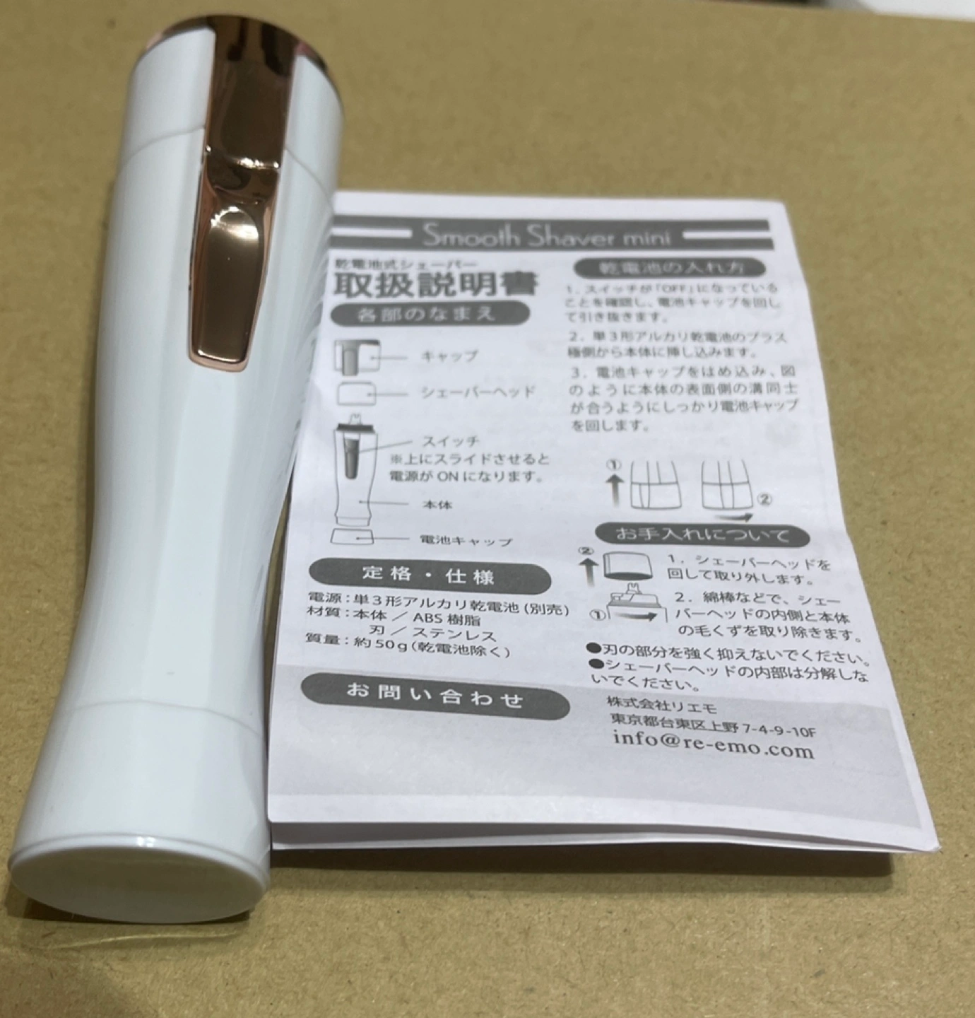 ご覧いただきありがとうございます! 新品未使用品のスムースシェーバー ミニ Smooth Shaver miniとなります。 用途: うぶ毛ケア フェイスシェーバー 携帯用 ミニおすすめ 女性 顔 簡単ムダ毛ケア コードレス電気ミニシェーバー 正規品 顔剃り器 ムダ毛処理 ワキ毛 処理 ビキニライン 腕 顔そり このコードレス電気ミニシェーバーの6つのポイント 1 刃が直接触れないから肌に安心 2 細かい産毛もキャッチ 3 コードレスでいつでもどこでも 4 コンパクトでリップ感覚で持ち歩き 5 メイクの上からでも簡単ケア 6 顔以外のムダ毛処理 うぶ毛が気になった時にさっと取りだしてケアできる、携帯サイズの女性用ミニシェーバー。 回転式の内刃とスリットの入った外刃で、細かいうぶ毛をしっかりキャッチ。 内側の回転刃が肌に直接触れない構造のため、やさしい肌あたりでうぶ毛ケアができます。 メイクの上からも使用可能。 化粧ノリのよい、ワントーン明るい印象の肌に仕上げます。 シェービングクリームや水などは必要ありません。回転式の内刃とスリットの入った外刃で、細かいうぶ毛をしっかりキャッチ。 内側の回転刃が肌に直接触れない構造のため、やさしい肌あたりでうぶ毛ケアができます。 刃がお肌に直接触れないのでヒリヒリしにくい! 剃りにくい毛もしっかり取り込み回転刃でスムーズにカット。 シェーバーヘッドは取り外して水洗いが可能。 ON-OFFだけの簡単操作・乾電池式でコードレス 。 ■使用電池:単3形アルカリ乾電池×1本(別売)