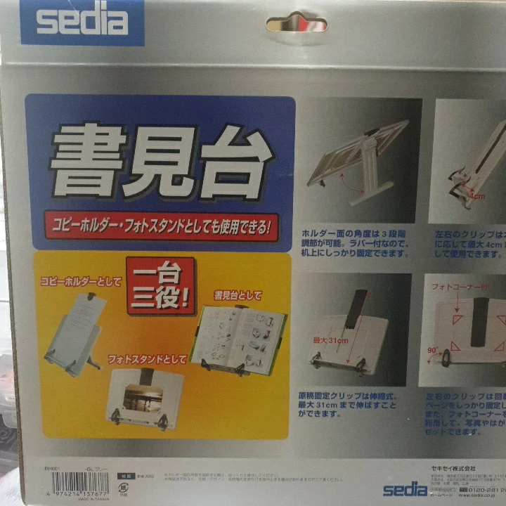 セキセイの書見台です 二個あります 【情報】 ブランド:セキセイ (sedia) 用途:書見台、コピーホルダー、フォトスタンド 【特徴】 ・ホルダー面の角度は3段階調整可能 ・原稿固定クリップは伸縮式で最大31cmまで伸張可能 ・左右のクリップは最大4cmまで対応 中古品であることご了承ください