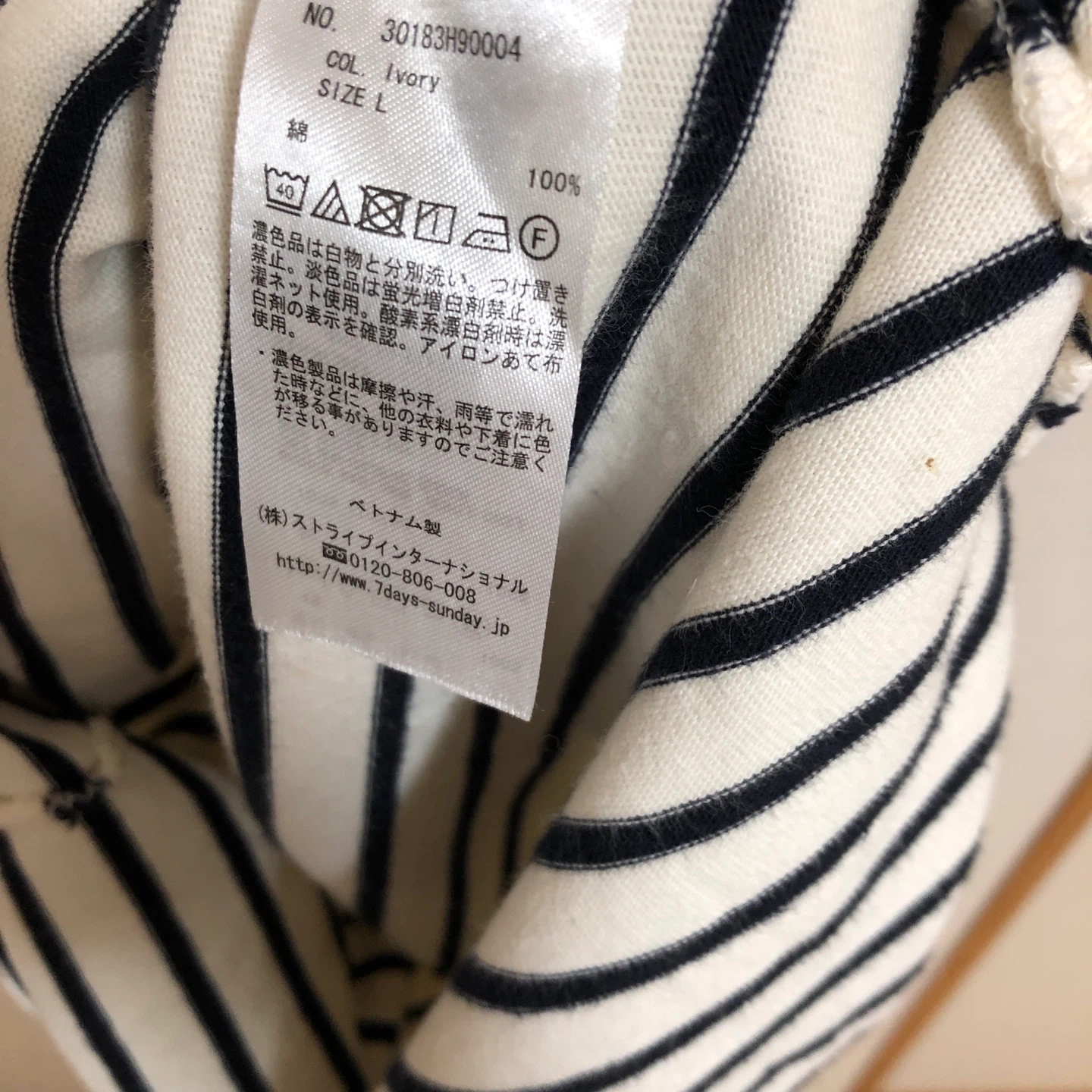 セブンデイズサンデイのボーダーワンピースです ・ブランド:セブンデイズサンデイ ・サイズ:L ・カラー:アイボリー ・素材:綿100% ・状態:使用感少なめ 中古品であることご了承ください