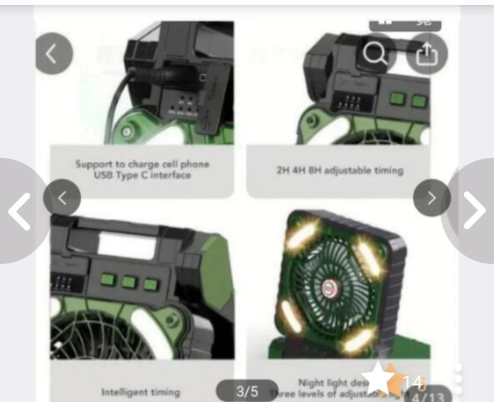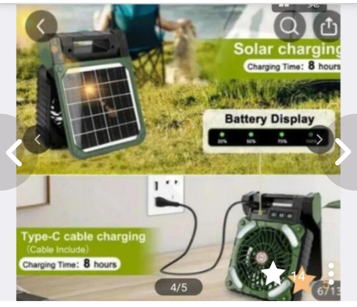 あたたかさソーラー充電式ファンです。 緑色 新品未使用 【情報】 ・サイズ:約230mm x 175mm x 75mm ・機能:ソーラー充電、USB Type-C充電、携帯電話充電 ・その他:2時間、4時間、8時間タイマー機能、LEDライト付き 風量、明るさも充分あります。 小型軽量、キャンプ、釣り等の アウトドアに最適です。Type-Cケーブル 受渡しは横浜市緑区中山駅北口徒歩3分 のセブンイレブン中山北口店前で お願いします。横浜線中山駅改札も 大丈夫です。コンビニ前駐車場ありませんが、全面道路広く、停められます。 日にちにもよりますが、am8-pm8 対応できます。