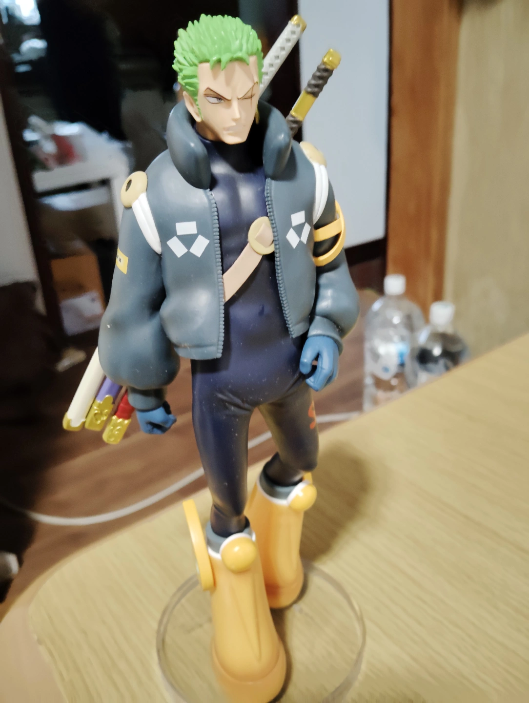 ・ゾロのフィギュア ・グレーと黒色の服 ・緑色の髪 ・台座付き