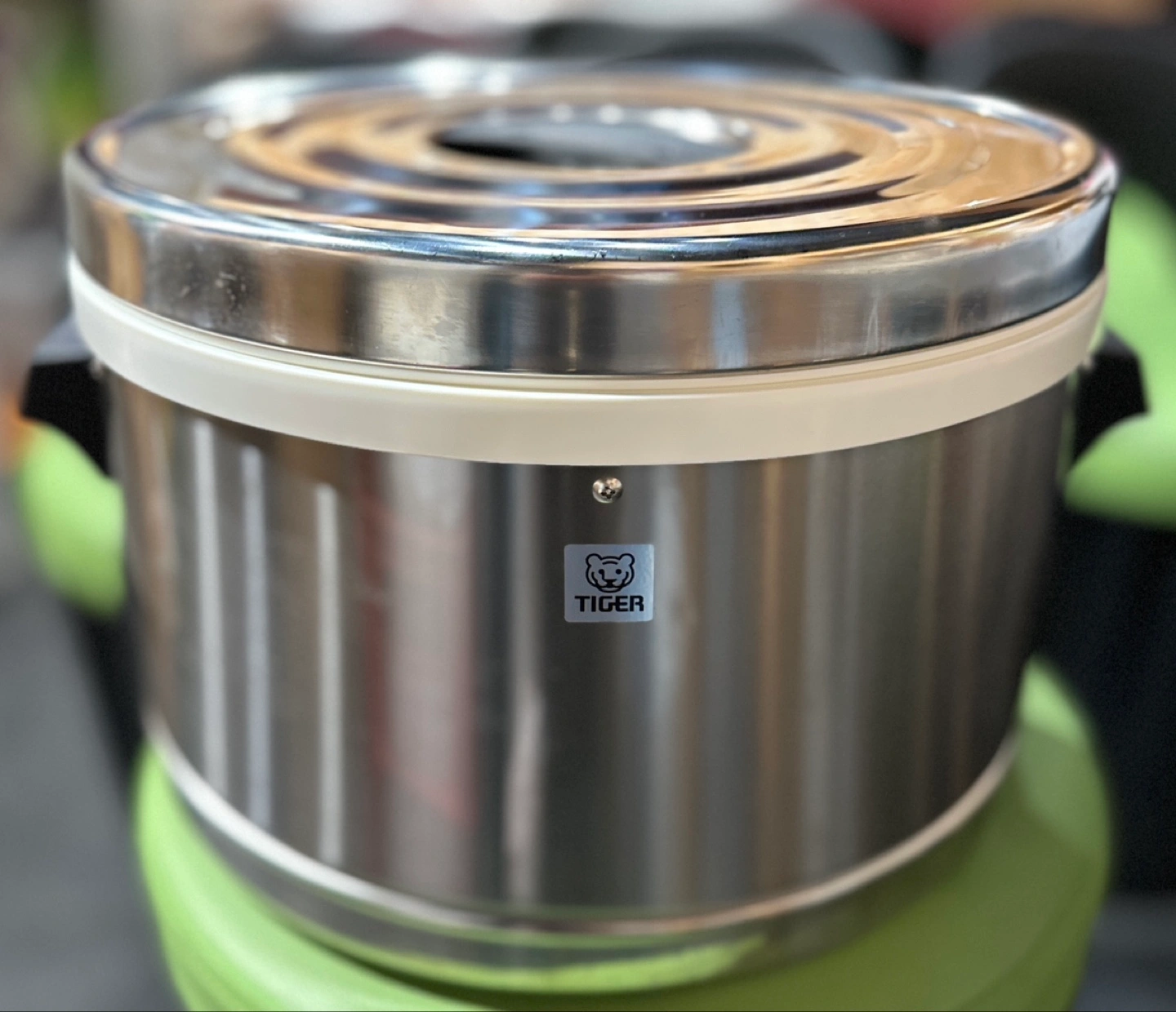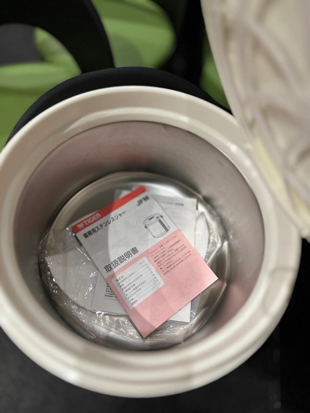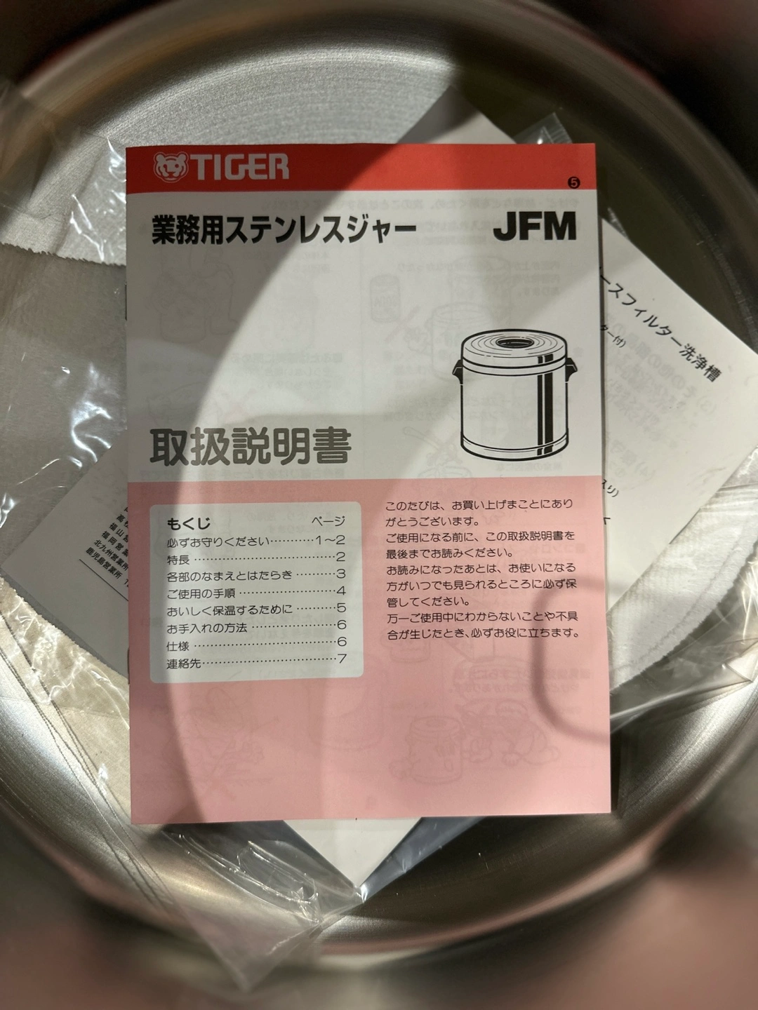 タイガー魔法瓶(TIGER) タイガー ステンレスジャー (ステンレス) 3.9L 2升2合、新品です。ネットで18,000円くらいで販売されています。 写真を撮るため包んであったビニールも今回破りました。 電気を使わず硬質ウレタンフォーム断熱材で効果的に保温(保温専用)ですので、地震の様な時も使えます。 内容器は酸に強いモリブデン入りステンレス鋼を使用してます。 保管していて写真を撮る為明けまして今回箱は捨てました。