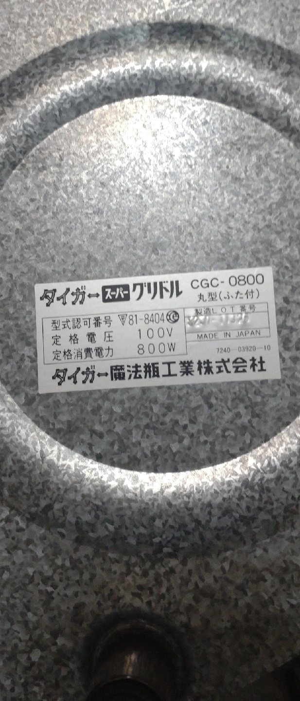 タイガーのスーパーグリドルです 【情報】 ブランド:タイガー 型番:CGC-0800 定格電圧:100V 定格消費電力:800W 【状態】 中古品としては状態は良い方だと思います 【付属品】 箱、電源ケーブル、取扱説明書 中古品であることご了承ください