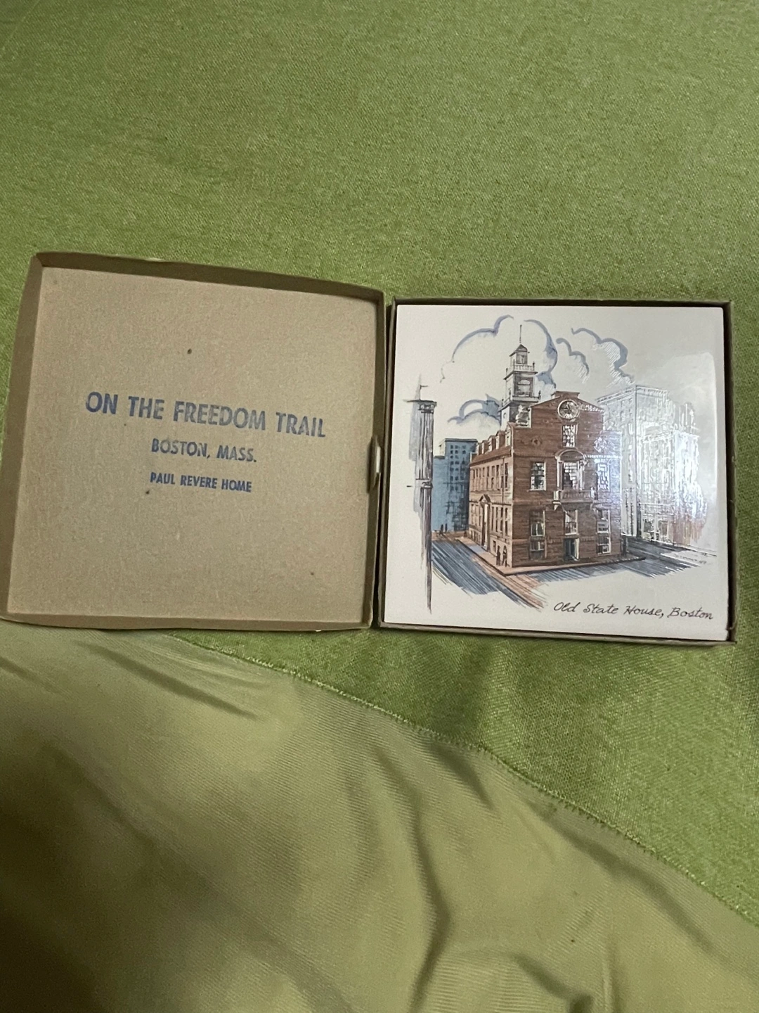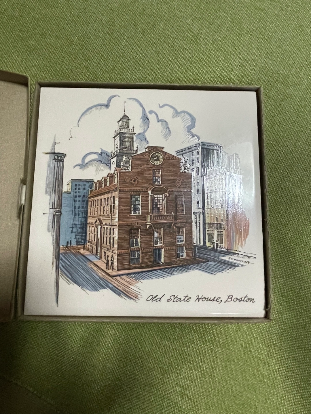 ・タイル ・Old State House, Bostonの絵柄 飾りタイル 長期未使用品 外国のお土産