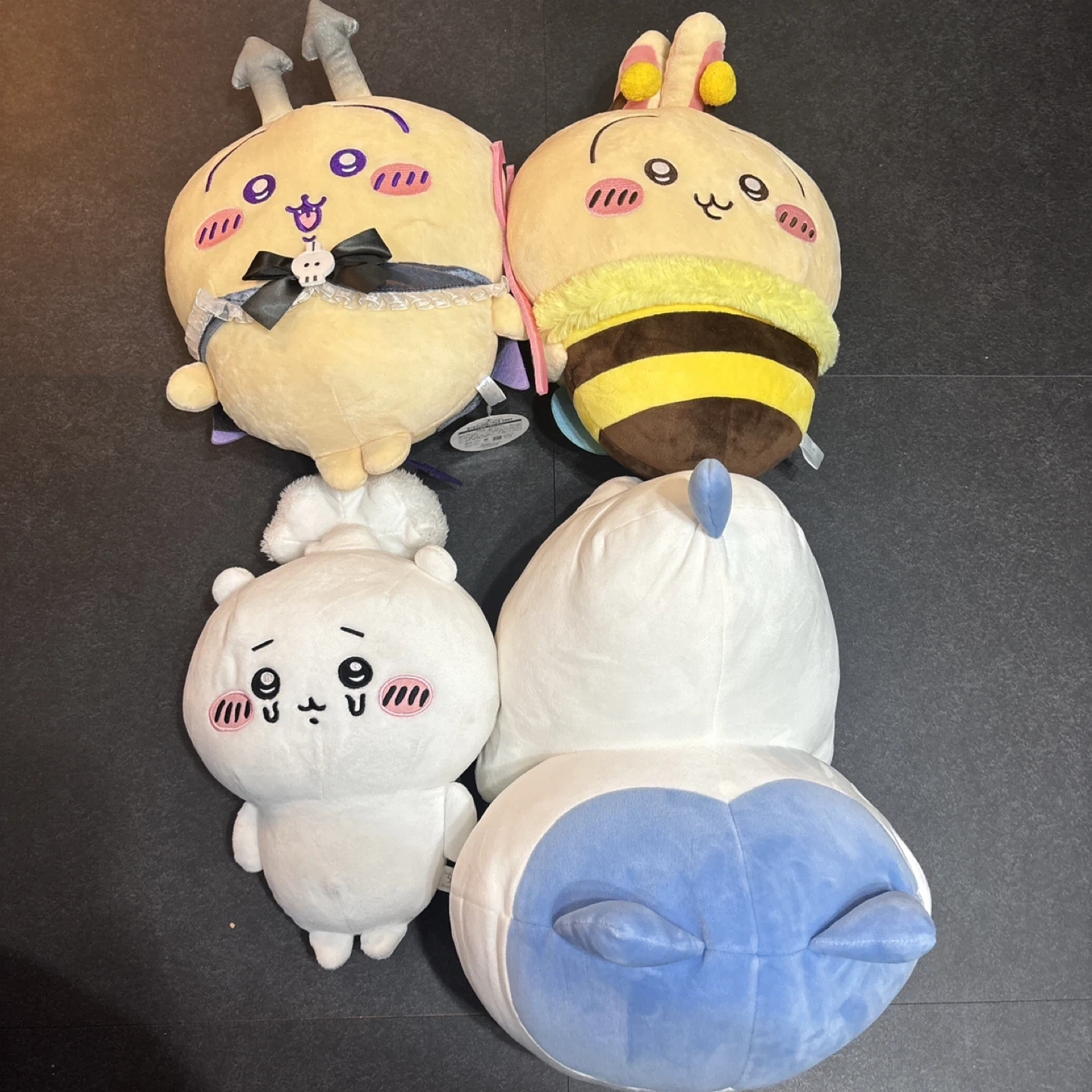 ビッグサイズなぬいぐるみ4点セットです。 ①うさぎ あくまなBIGぬいぐるみ 新品タグ付き、美品 ②うさぎ ミツバチ タグなし美品 ③ちいかわ 頭の上(ちょんまげ?)に少し黒い汚れあり 洗えば落ちると思います。 ④ハチワレ タグなし美品 大きく、送料がかかるためこれ以上のお値引きは考えておりません。ご協力よろしくお願い致します。