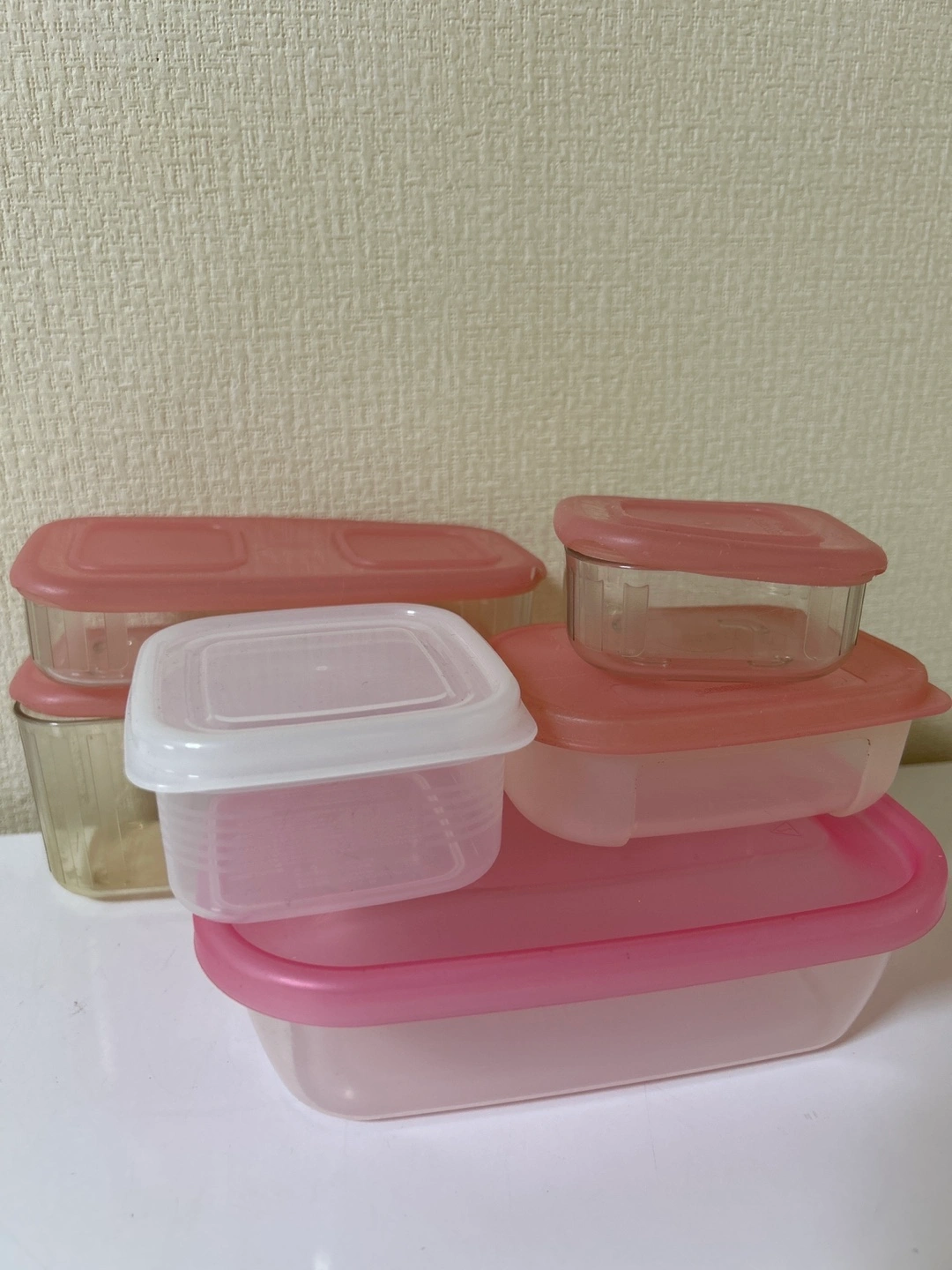 タッパーウエア 4 保存容器 2 電子レンジご使用の際は 蓋を取り外してご使用ください! 洗浄、消毒済みですが 神経質な方はご遠慮ください✨ タッパーウエア 15×7×7cm 15×7×3cm 11×7×4cm 8×8×3cm クリアピンク蓋 18×11×5.5cm 500ml クリアミニ 8×8×4cm 200ml 細かなものを入れたり 引き出しの小分けにつかってもいいかも知れません。 受け渡し場 所は指定場所に限らず わかりやすく車が停められる場所であれば 応相談可能です。