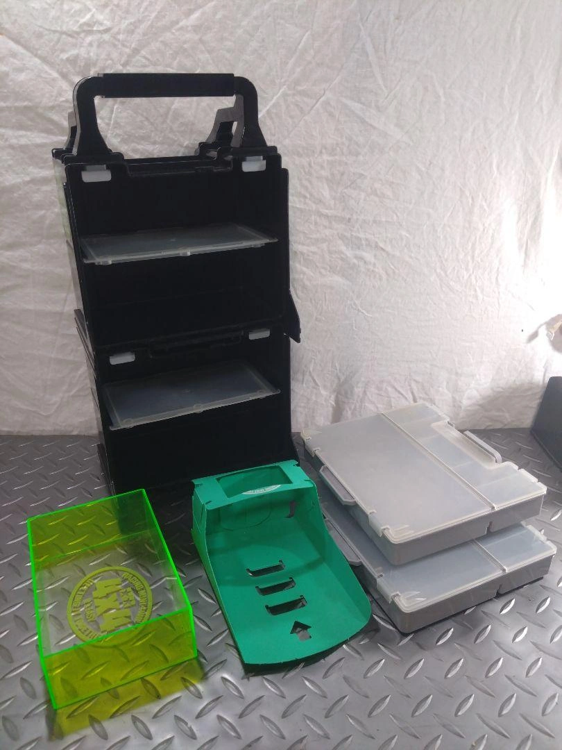 キャリィボックスのハンドル(取っ手)は外して発送いたします。車検ボックス、キャッチャーも中に収めての発送です。 説明文に誤記、勘違い等がある場合も考えられますので、画像から適合、用途、状態を判断する事が可能な方、宜しくお願いします。 キズ、ヨゴレあります。長期自宅保管品となりますので画像から状態をご確認ください。分からない部分はご質問ください。