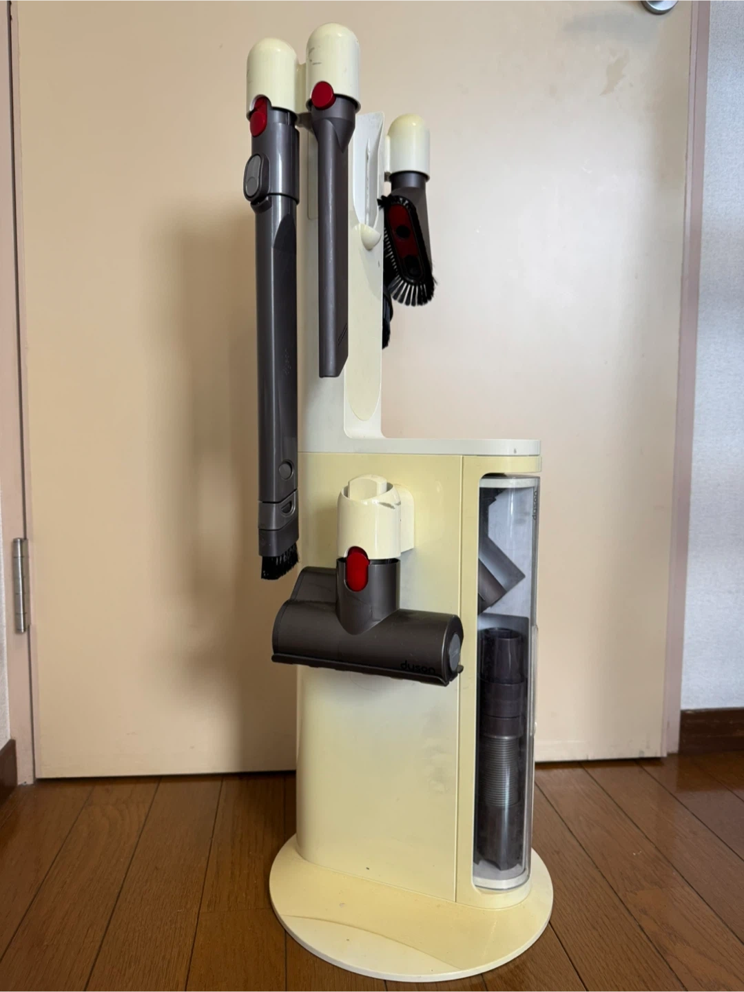 ダイソンのコードレスクリーナースタンドです。 【状態】 ・使用感少なめ ・目立つキズなし 【付属品】 ・各種アタッチメント 中古品であることご了承ください ダイソン台限定モデル カートリッジ10個 台の変色はありますが使えます 数個数回使用しましたがほぼ新品です