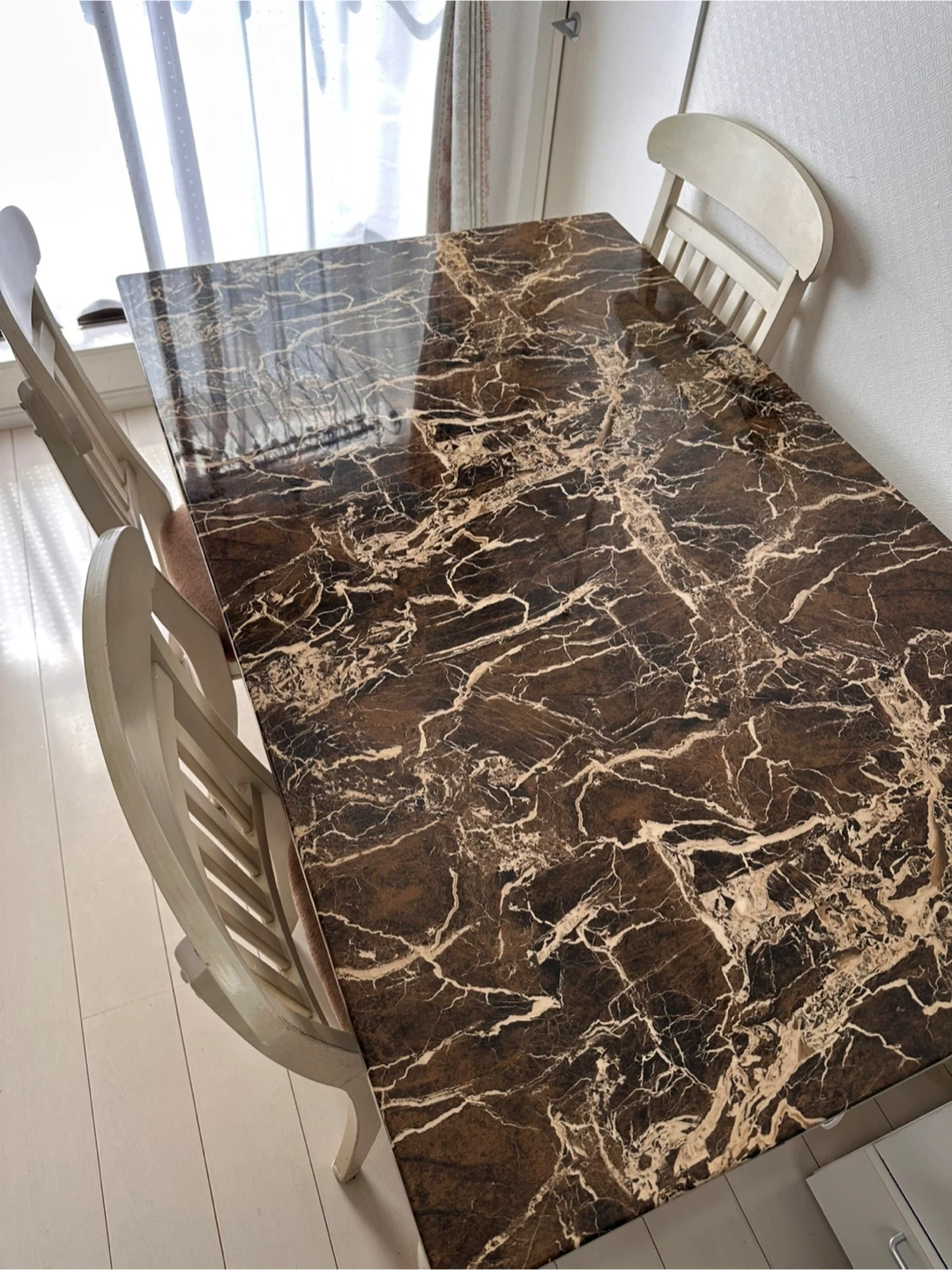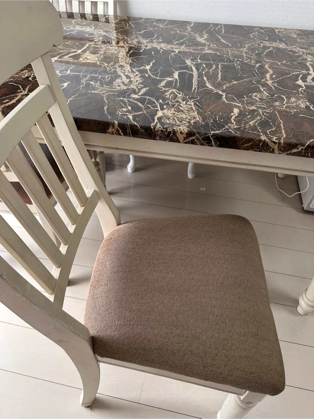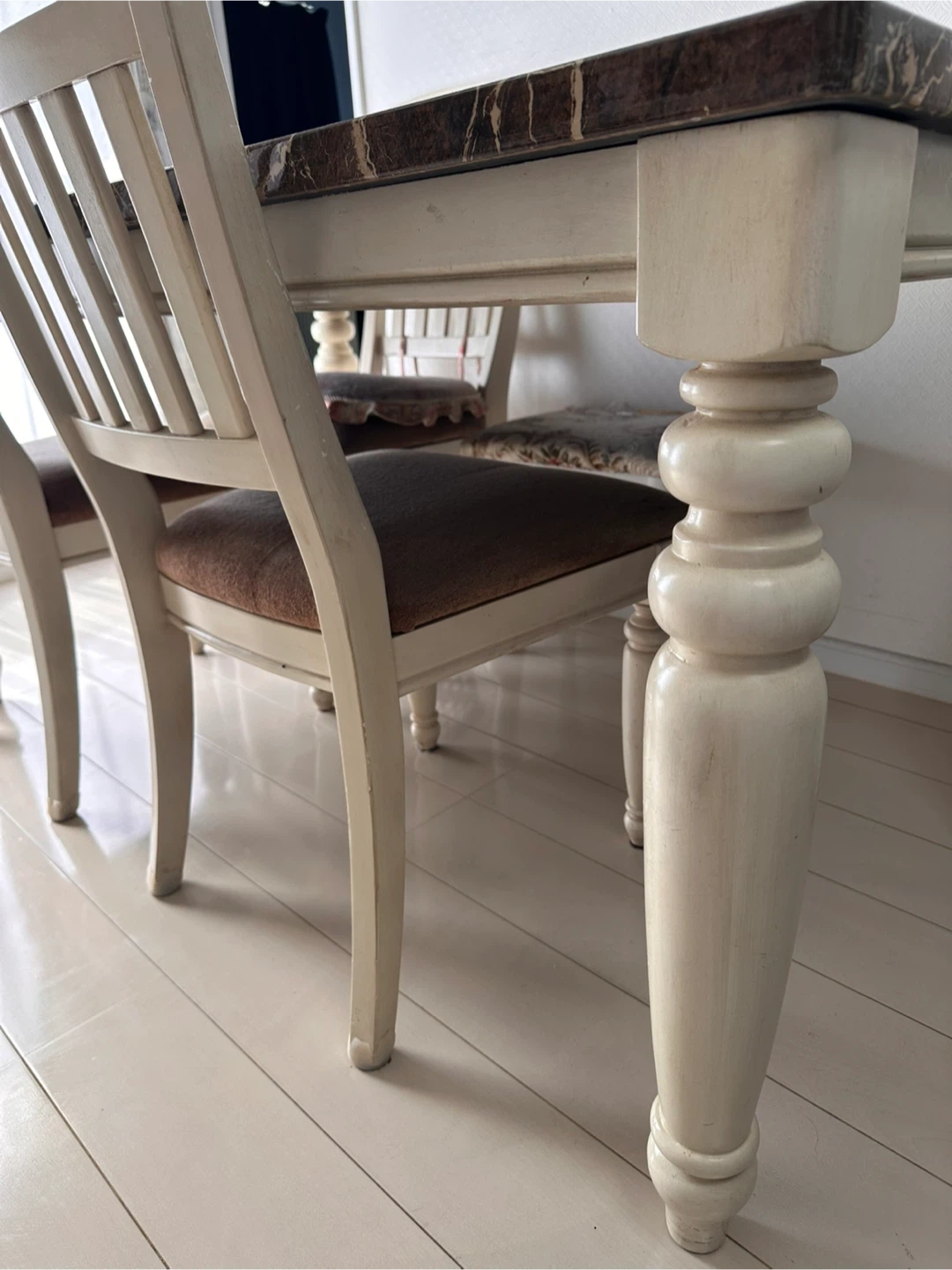 ダイニングテーブルと椅子のセット 15年前30万ほどで購入した北欧ダイニングテーブルです。 テーブルはクロスを引いていたので天板はきれいですが15年使用したので年期アリ、傷汚れありです。 イスは6脚ついています。 引越しに伴い1ヶ月間のみ出品いたします。 中古品であることをご理解ください。 よろしくお願いいたします。