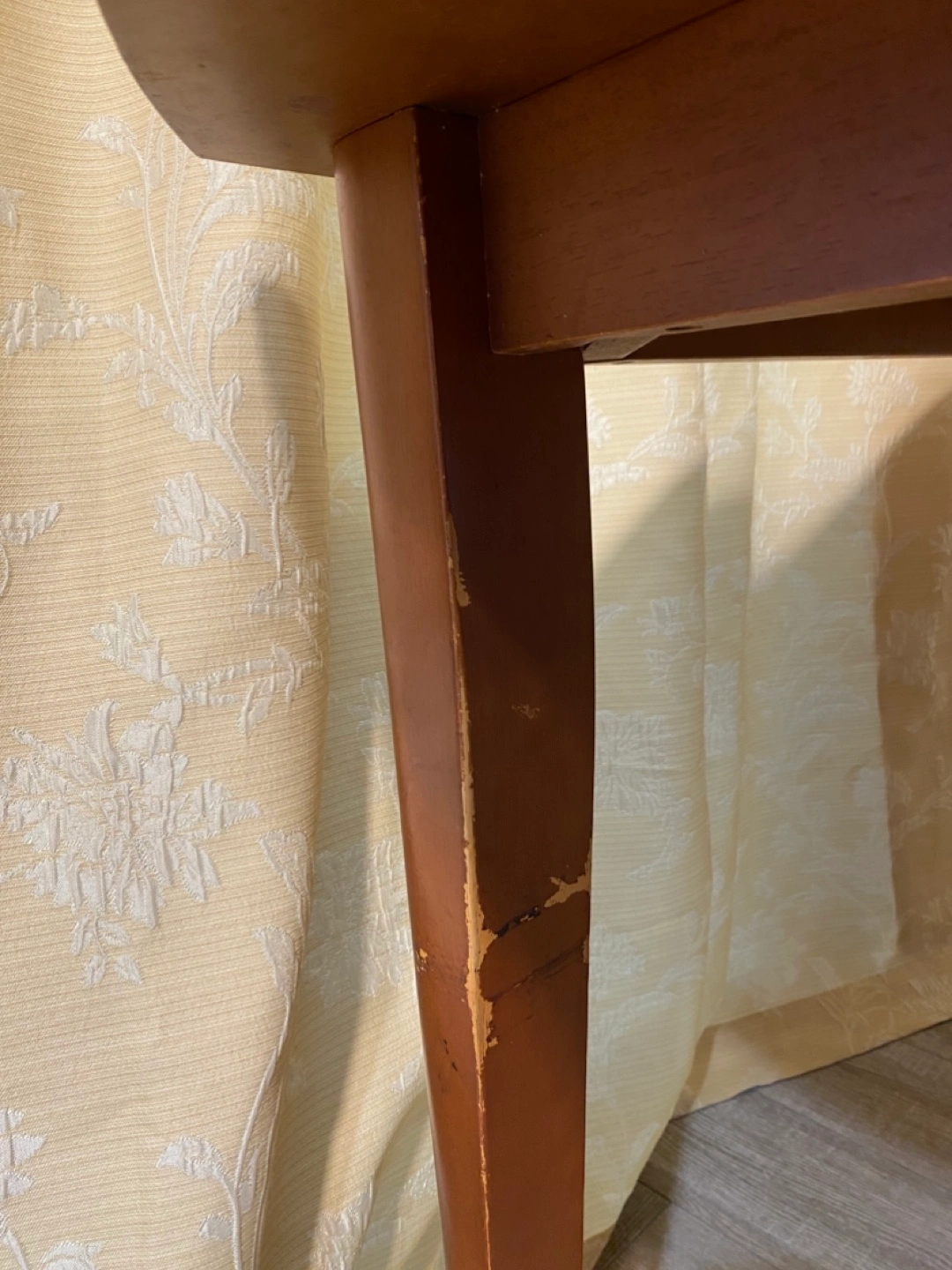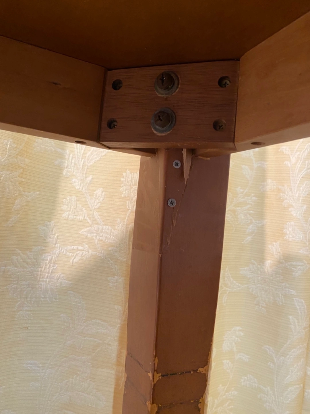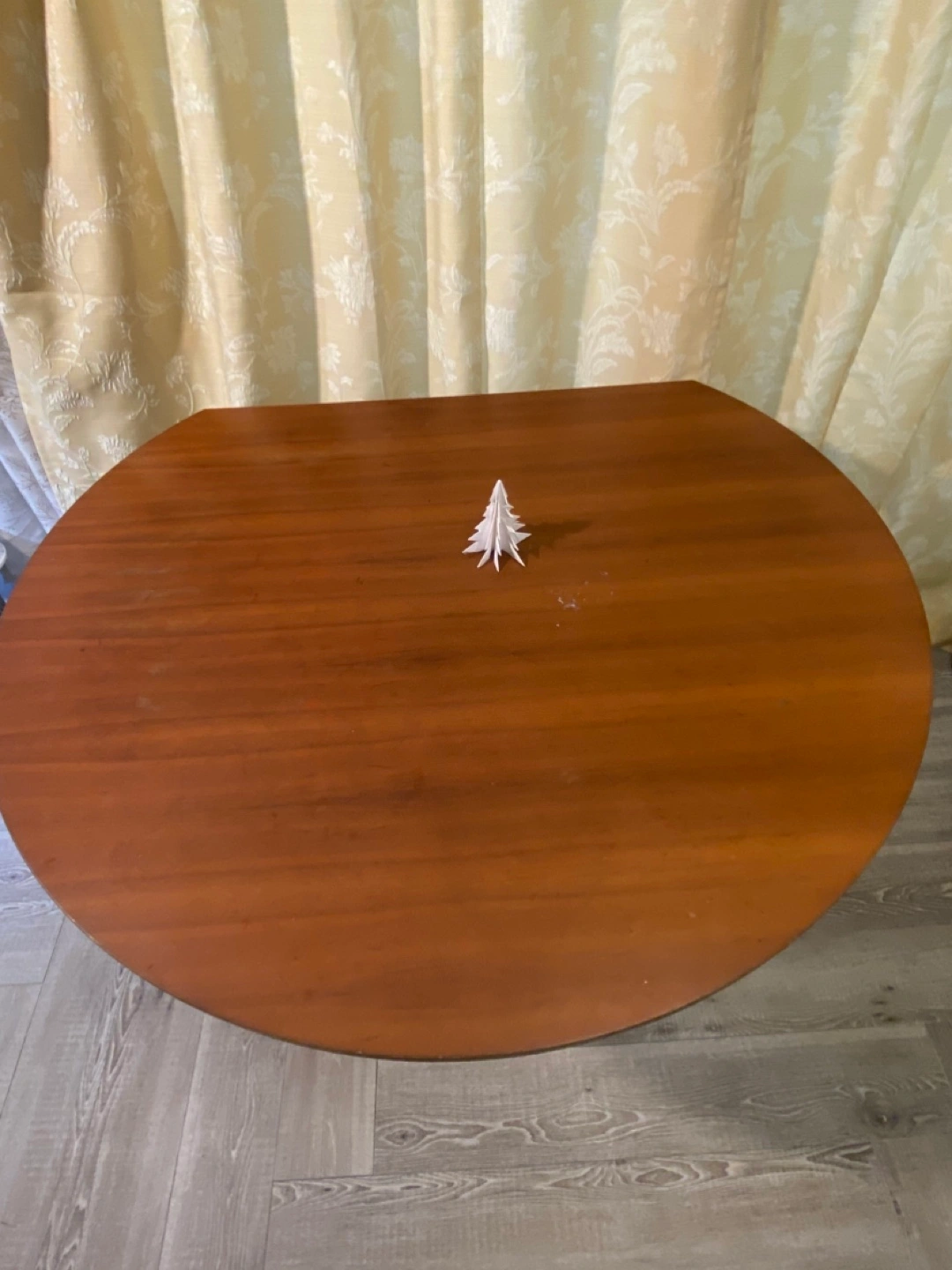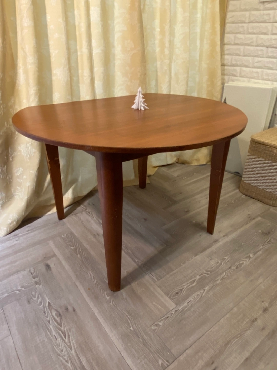 ありがとございます。 キッチンや工作室で テーブルを傷つけても心配せずに 気兼ね無く使用したい方に良いかもしれません。 もちろんダイニングテーブルとしても使用可能❣️ 古い円形テーブルの一部を少し切り落として 壁に寄せて使ってきました。 訪問者やパーティーでは おしゃれなテーブルクロスで覆い使用。 テーブル足の一つは大工により補強されています。 このテーブルを現地まで車で引き取りに来られる方 どうぞ 12月15日(日)までに 引き取りに来られる方どうぞ