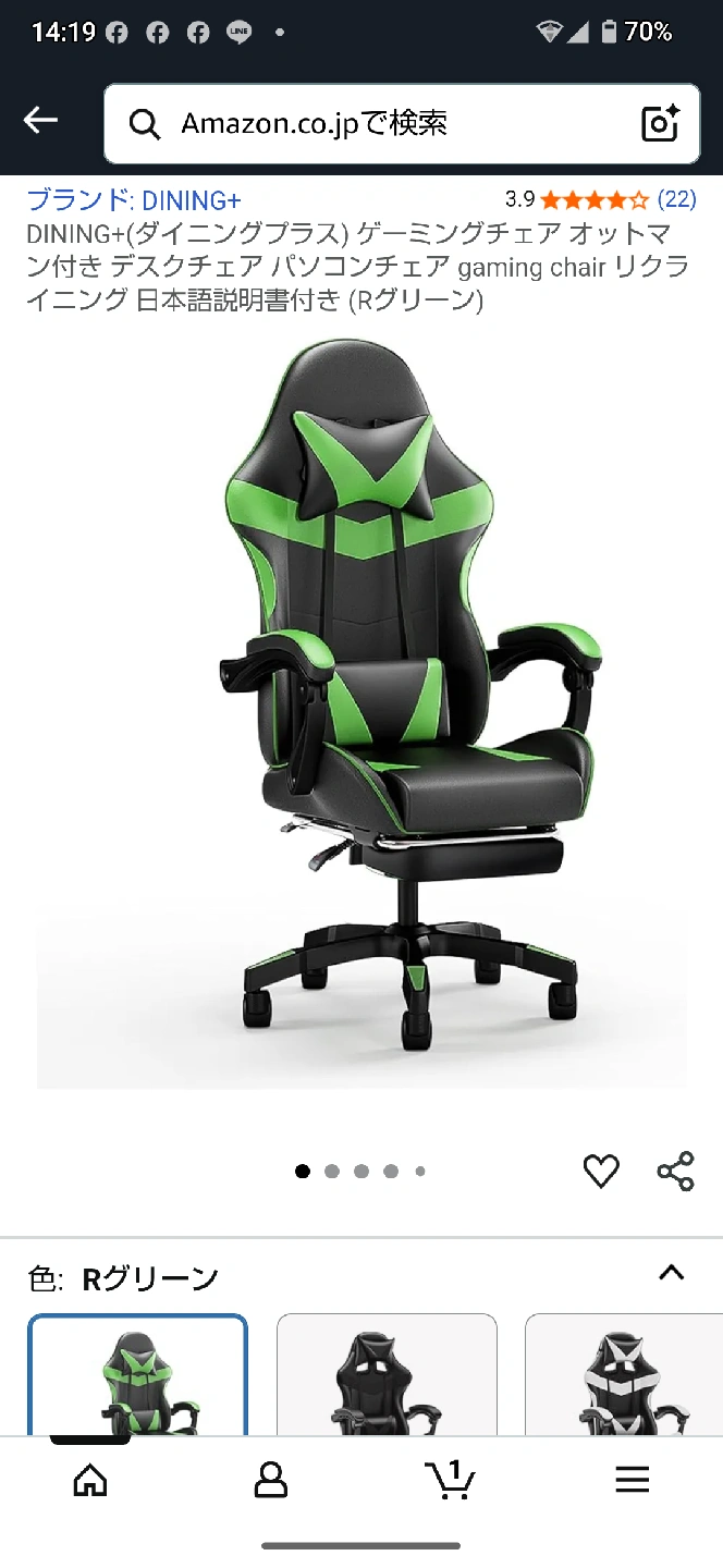 ダイニングプラスのゲーミングチェアです 【情報】 ブランド:ダイニングプラス(DINING+) 商品:ゲーミングチェア 色:Rグリーン 【状態】 未だ組み立てても御座いません あくまでも一回Amazonからのダンボールから取り出した、中古品であることご了承ください