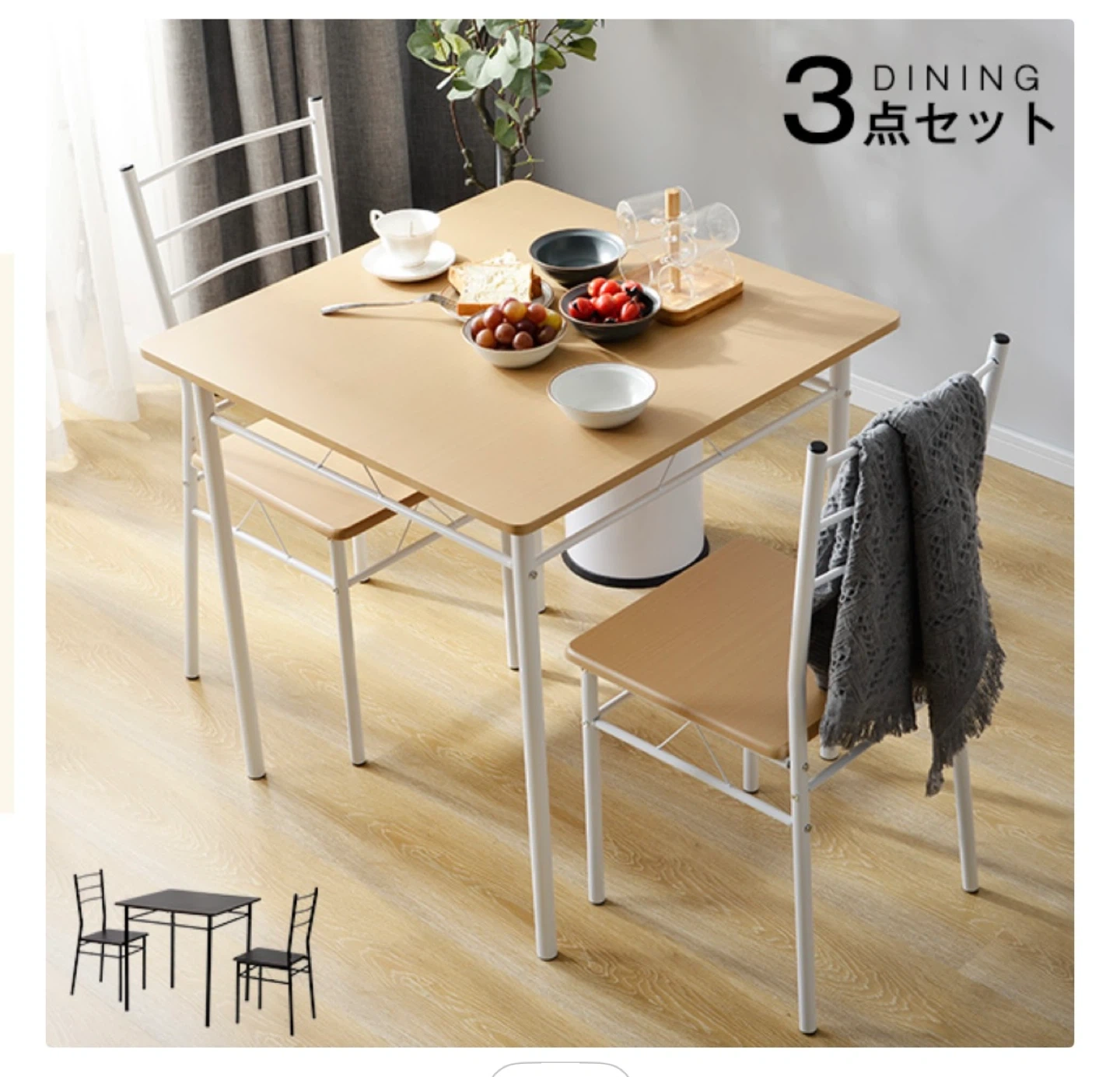 ダイニング3点セットです! サイズはサイト画像をご確認くださいませ^^ ・カラー:ナチュラル ・テーブルと椅子のセット ・小さな傷がいくつかあります 中古品であることご了承ください。