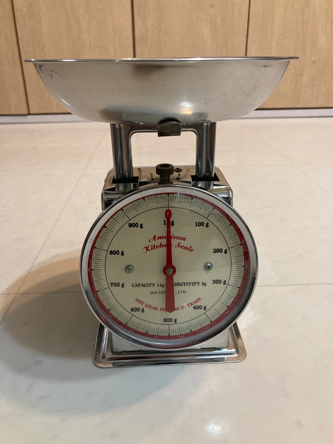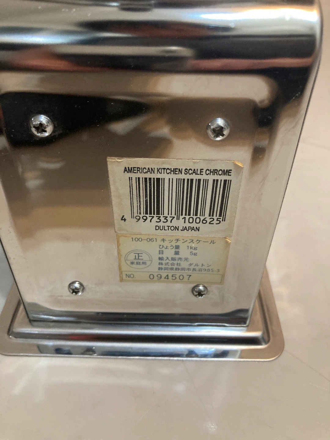 ダルトンのキッチンスケールです 【情報】 ブランド:ダルトン 種類:キッチンスケール 容量:1kg 【状態】 使用感少なめ アメリカ製のレトロ雑貨です。 実用はしておらずオブジェ的に飾っていましたが、スケールとしても使えました。 トレイ調整ネジ部分に経年によるくすみあり。トレイ、本体は拭き掃除しましたが、汚れの見落としにご容赦くださいませ。 中古品である方にお譲りできればと思います。