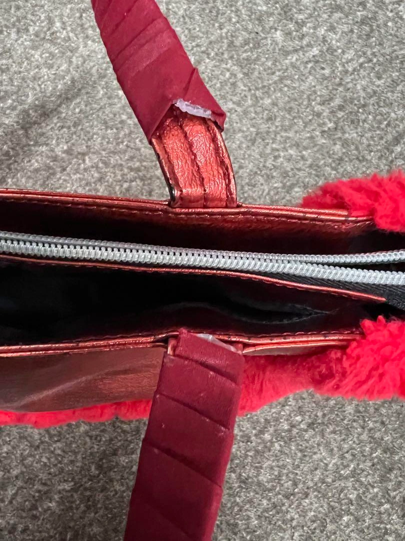 ご覧いただきありがとうございます。 ダンスウィズドラゴン、赤のラウンドバックです。 DWDの部分と両サイドのファーがとても可愛い♡です ●横幅 →33cm 底マチ→11cm 高さ →22cm ●写真にて傷の部分をご確認ください。 ●取っ手の部分はラメが色落ちしてしまったので、赤い紐を巻いてあります。 ●used品になりますので、ご了承いただける方宜しくお願い致します。 ご希望の方はお気軽にご連絡ください。