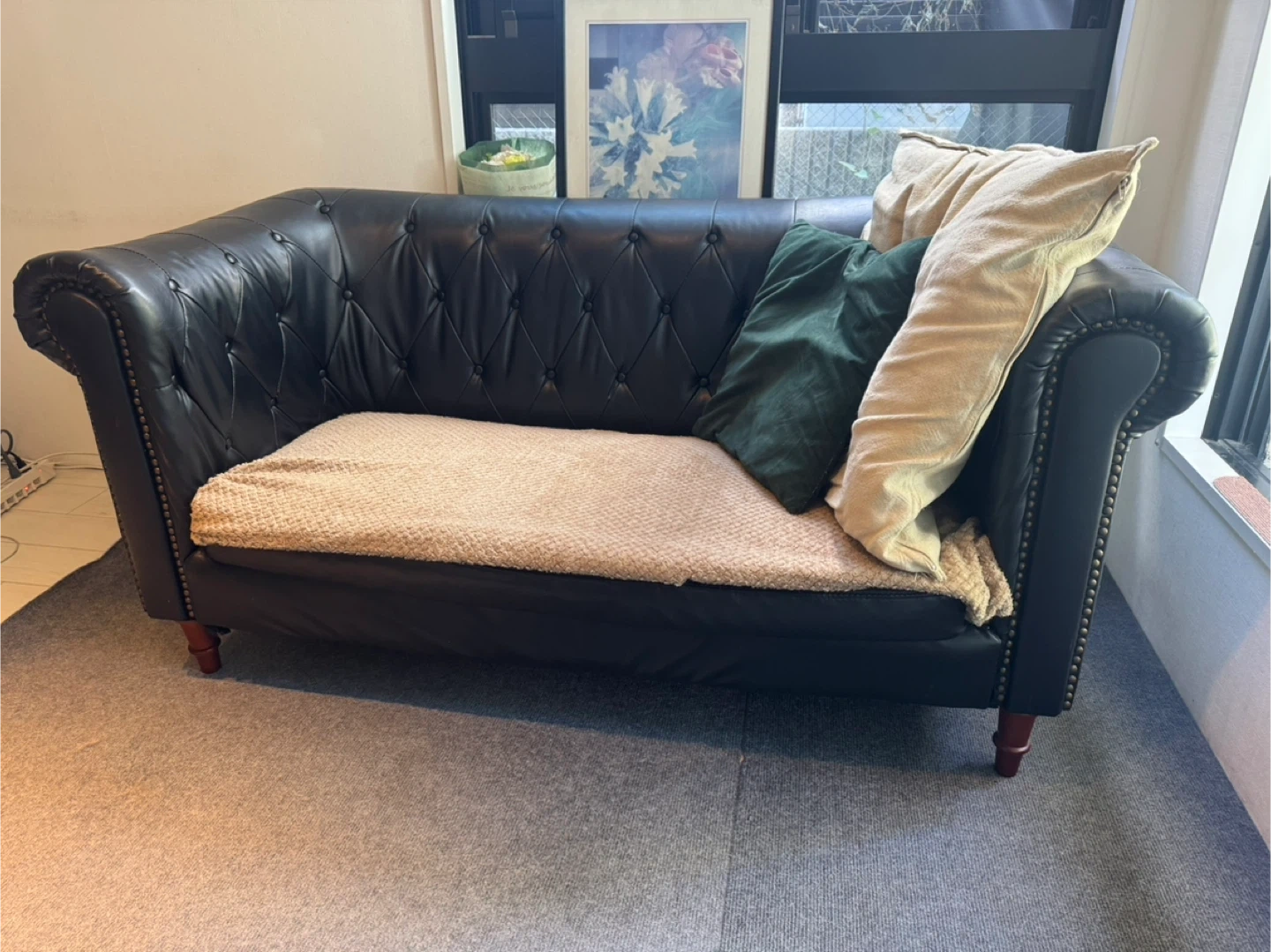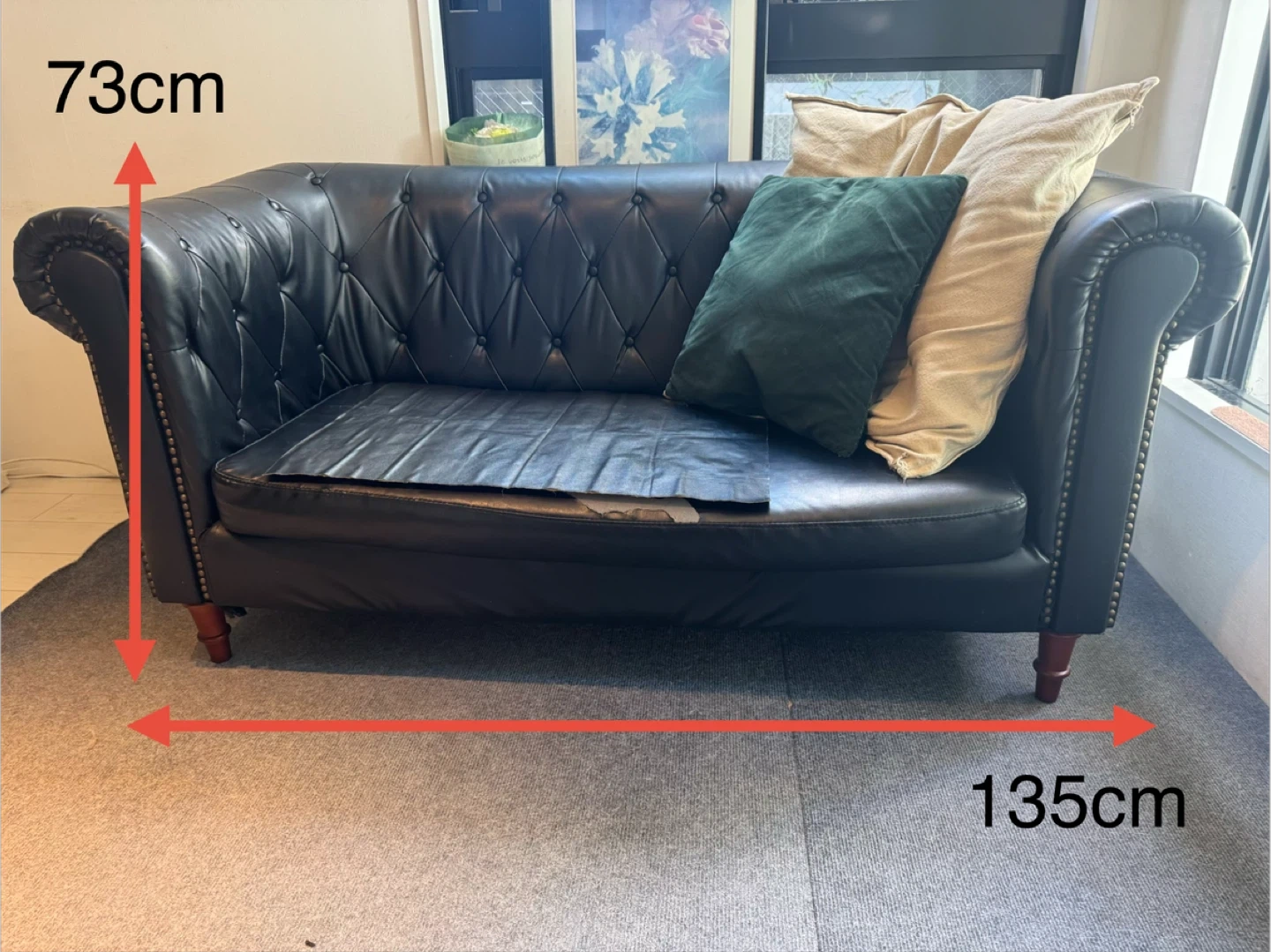 使用感あります。 清掃努力しますが、(座面が縫い付けられている仕様のため)ゴミが奥に挟まった状態での引き渡しとなります。 レザー修繕シート、クッション2つ、ブランケットが含まれます。 実物を確認の上受け取るかを決めたい!も歓迎です。 西新宿4丁目までお越しいただける日程をご連絡下さい。