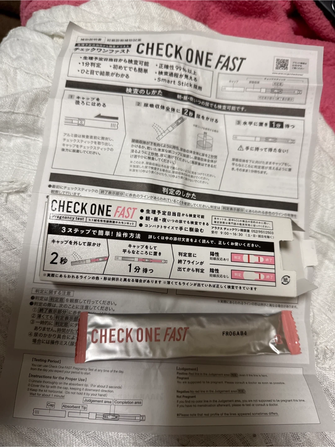 チェックワンファストの早期妊娠検査薬です 普通の検査薬ではフライングになる時期でも、こちらの検査薬なら生理予定日から反応が出ます。 私はフライングの更にフライングで検査したので薄くではありましたが線が出て、妊娠発覚したのは3w5dでした。 残りの一本使う事ないのでお譲りします。 【情報】 ブランド:チェックワンファスト 種類:妊娠検査薬 【状態】 未使用品 説明書あり