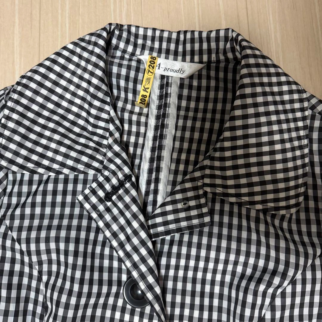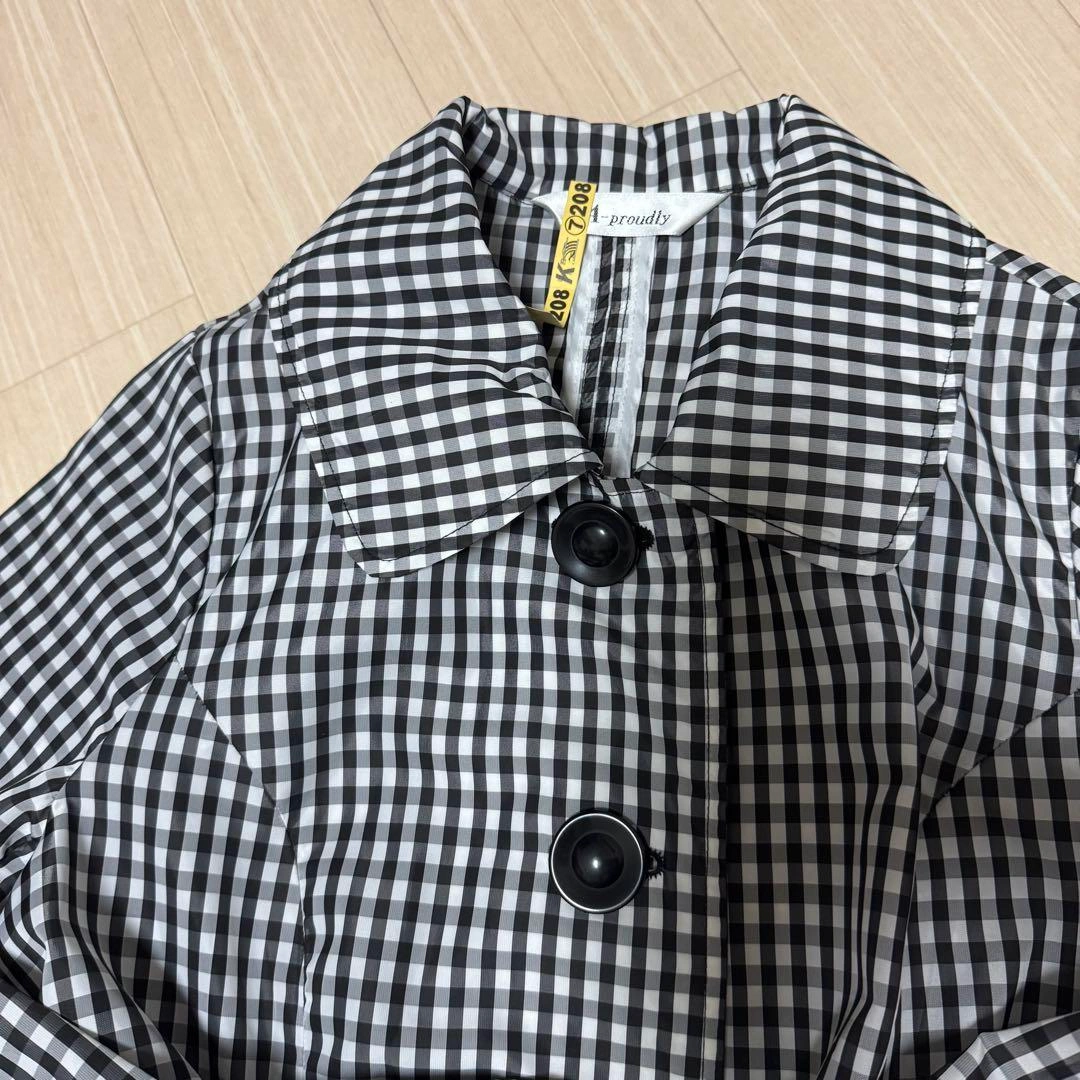ブラック・ホワイトのチェック柄トレンチコートです。ウエストベルト付き。使用感がほとんど感じられない綺麗なお品で、クリーニング済み(ラベル付)です。 ポリエステル生地で、肌寒い日にウインドブレイカーとして、雨の日のレインコート代わりにも。 折り畳んでバッグに入れてもシワや汚れがつきにくいので便利です。 - カラー: ブラック・ホワイトのチェック柄 - スタイル: トレンチコート - ブランド: A-proudly - 素材: ポリエステル100% - デザイン: ウエストベルト付き - 前面ボタン留め/両サイドにポケット - サイズ: M ご希望の方はお気軽にご連絡ください 他のお品物とおまとめの場合、 お値引き致します。 受け渡しは10/8〜14迄 いなげや関町店入口宝くじ売り場辺り、上石神井駅、タイミングにより吉祥寺駅も可能な場合があります