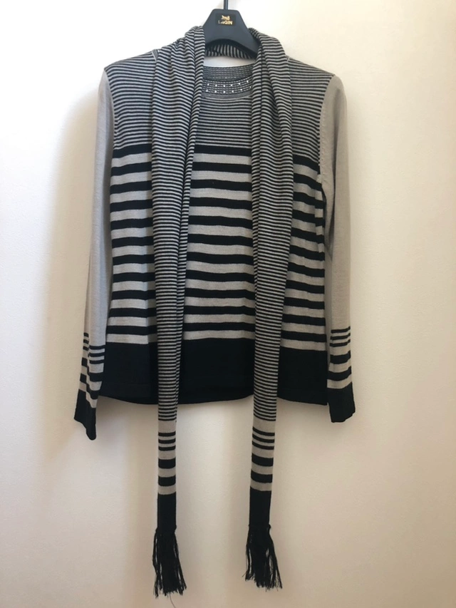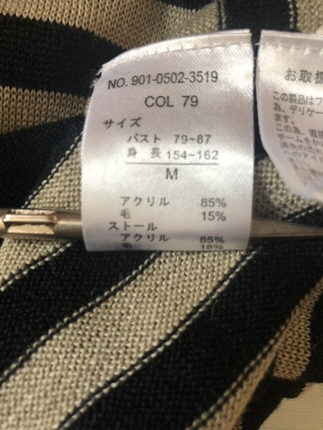 あたたかさカットソー ストール 2点 長袖 ボーダー ストライプ スパンコール バスト79〜87 身長154〜162 服アクリル75% 毛15% ストール アクリル75% 毛15% 写真撮る時確認しましたが、シミ ほつれ カビ無かったです 襟元も綺麗でした 神経質な方はご遠慮下さい 宜しくお願います