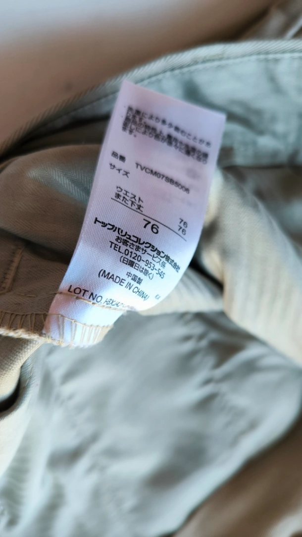 イオン チノ風パンツ 2着セット(ベージュ&ブラック) イオンのチノ風パンツ2着セットです。ウエスト76cmで、落ち着いたベージュとブラックの2色が含まれています。 使用回数はどちらも5回未満で、綺麗な状態だと思いますが、サイズがきつくなったため出品します。 シンプルでどんなコーデにも合わせやすいアイテムです。まとめてお得にいかがですか? 注意事項 素人保管のため、細かい点が気になる方はご遠慮ください。