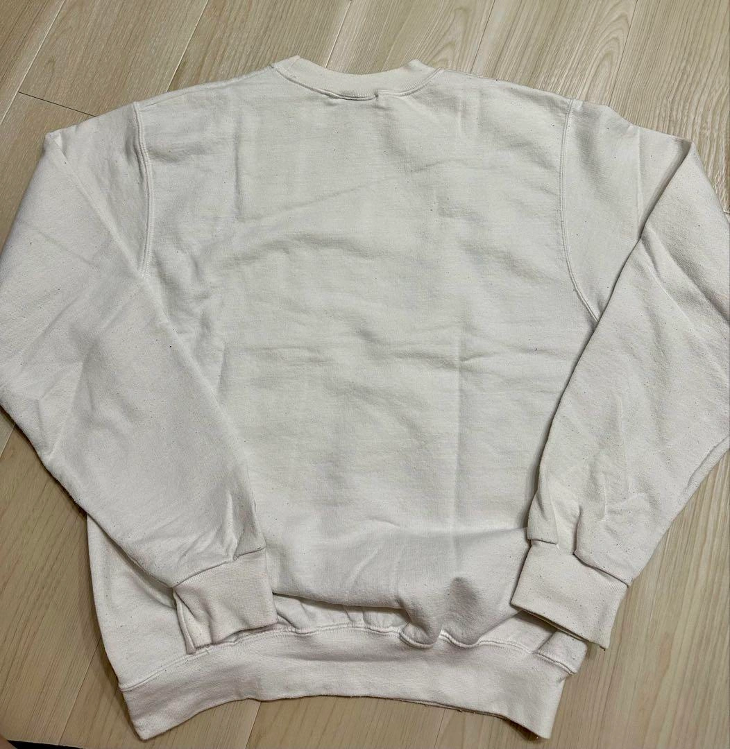 裏起毛のトレーナーです。 何度も使用していますが、目立つ汚れはありません。 写真の毛玉はもう少し綺麗にしてからお渡しいたします。 丈 :70cm 身幅:52cm 肩幅:45cm 袖丈:45cm 素人採寸ですのでご容赦ください。 加えて中古になりますので、ご理解いただける方のみご検討をお願い致します。 肩幅/身幅/袖丈/着丈 肩幅···45cm 身幅···61cm 袖丈···60cm 着丈···50cm カラー···ホワイト系 ご希望の方はお気軽にご連絡ください。