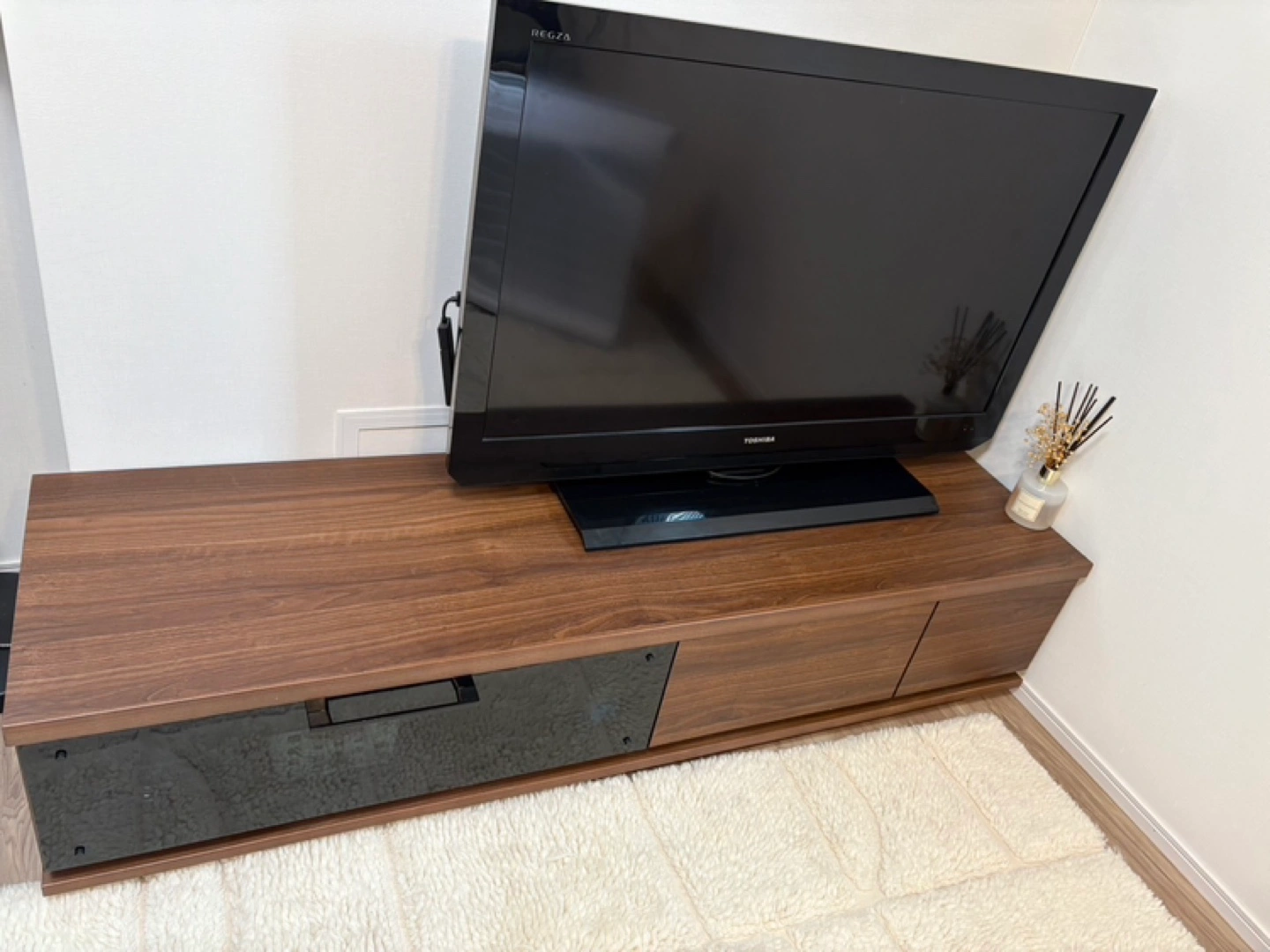 楽天で約2年ほど前に32,999円で購入したMade in Japanのテレビ台です! 色はウォールナットで、状態は良好です。どのインテリアにも馴染みやすいデザインです。 以下にてサイズなどの詳細をご確認いただけます: https://item.rakuten.co.jp/tansu/01070300/?scid=wi_ich_iphoneapp_item_share 今回模様替えでテレビスタンドを購入することになったため出品します。