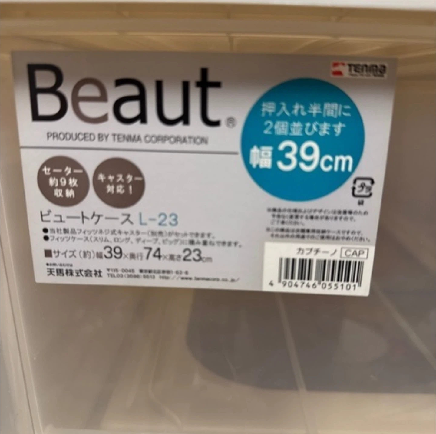 テンマの収納ケースです 【情報】 ブランド:テンマ 商品名:ビュートケース L-23 サイズ:幅39cm 奥行74cm 高さ23cm 【状態】 使用感少なめ、全体的にきれい 中古品であることご了承ください