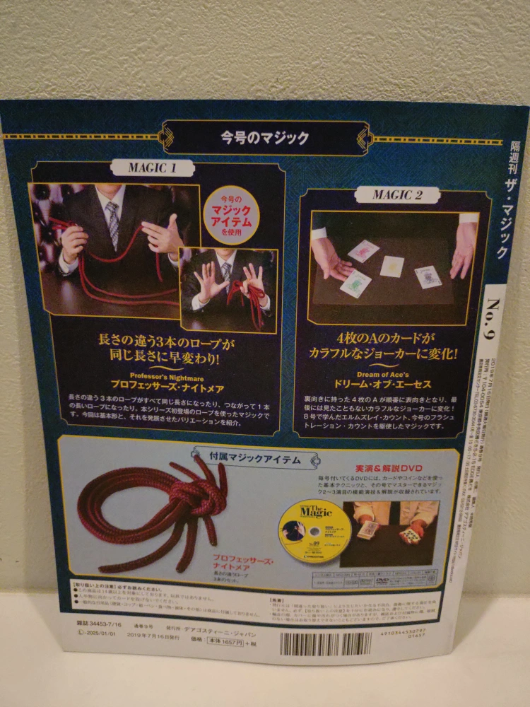 デアゴスティーニのザ・マジック No.09です 【情報】 ブランド:デアゴスティーニ 商品名:ザ・マジック ナンバー:No.09 付属品:DVD、マジック用ロープ 【状態】 未使用