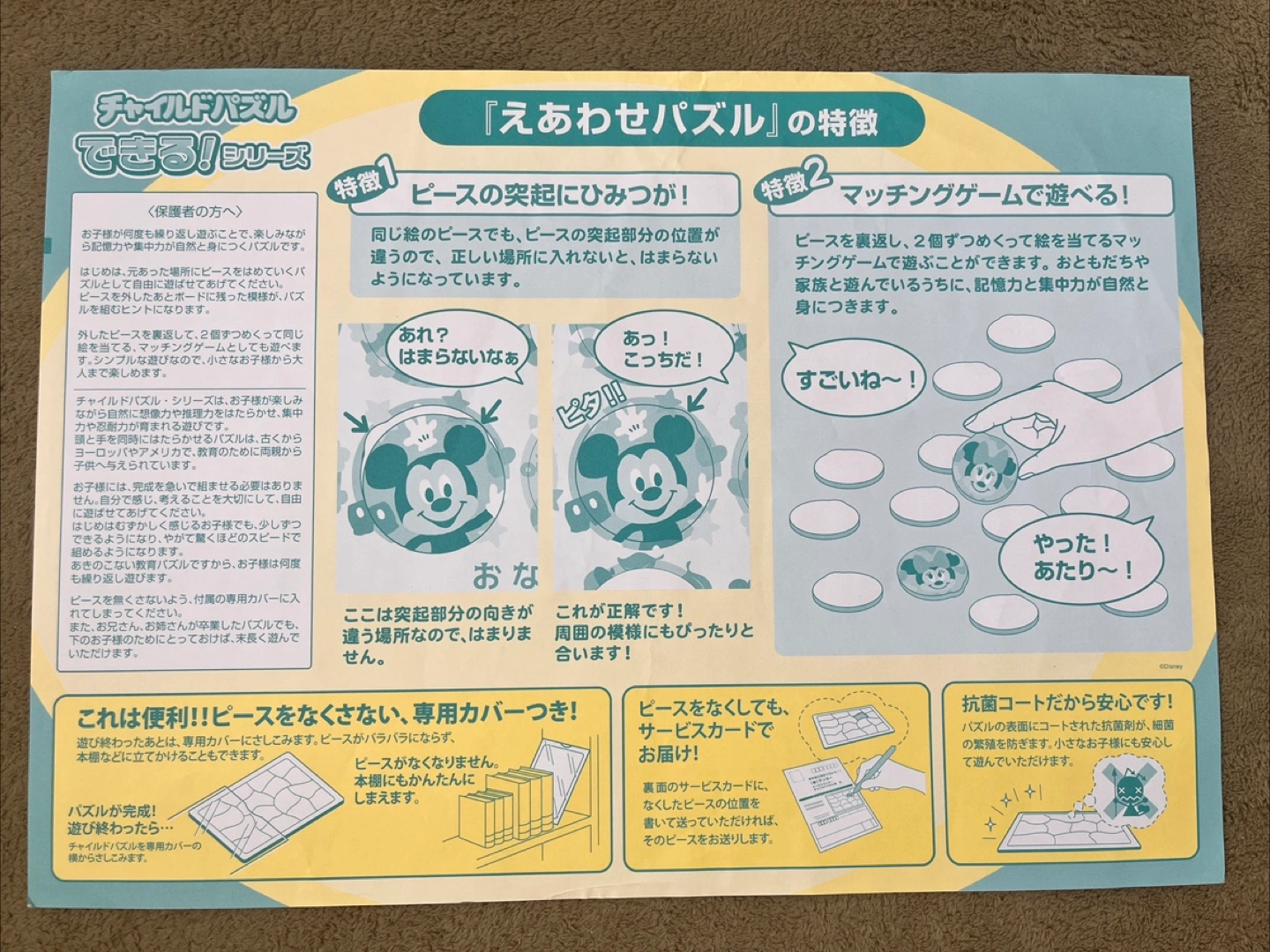 ディズニーのえあわせパズルです。 透明の付属の袋はないので、別の袋に入れてお渡しします。 ご覧いただきありがとうございます。