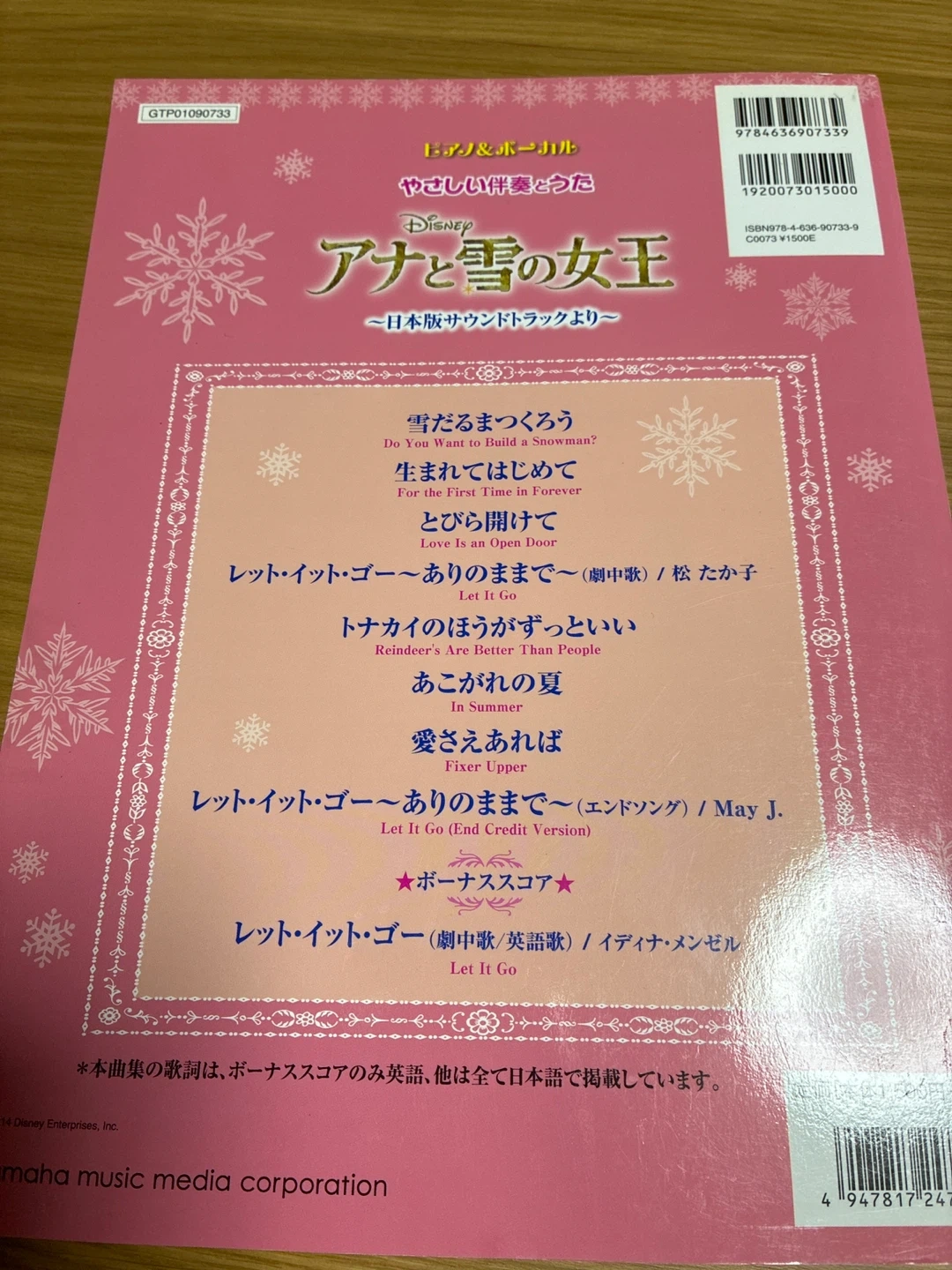 ディズニーのアナと雪の女王のピアノ&ボーカル楽譜です 【情報】 ブランド:ディズニー 種類:楽譜 ご不明点があればお気軽にご連絡ください