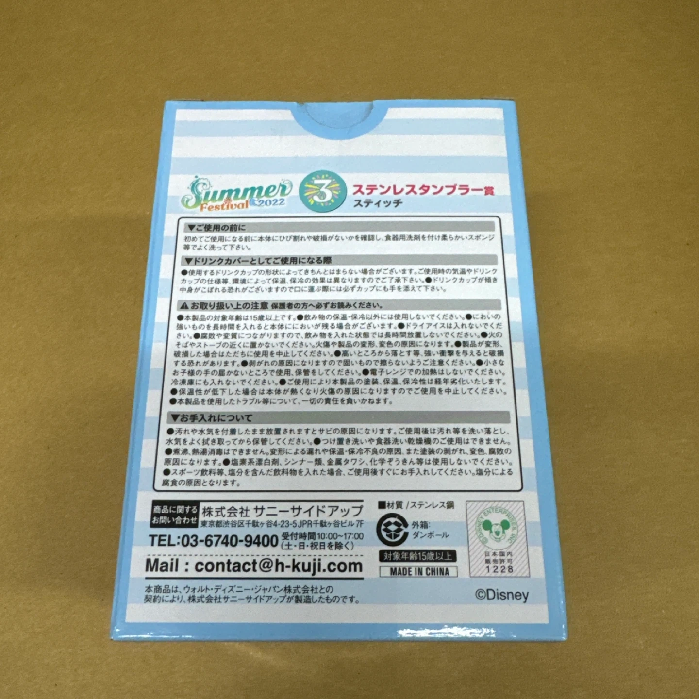 ディズニースティッチのタンブラーです 【情報】 ブランド:ディズニー 商品:ステンレスタンブラー デザイン:スティッチ 年式:Summer Festival 2022 【状態】 未使用品 【付属品】 箱 中古品であることご了承ください