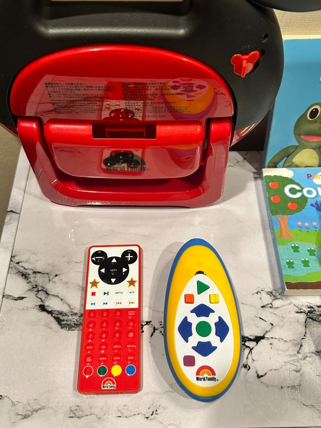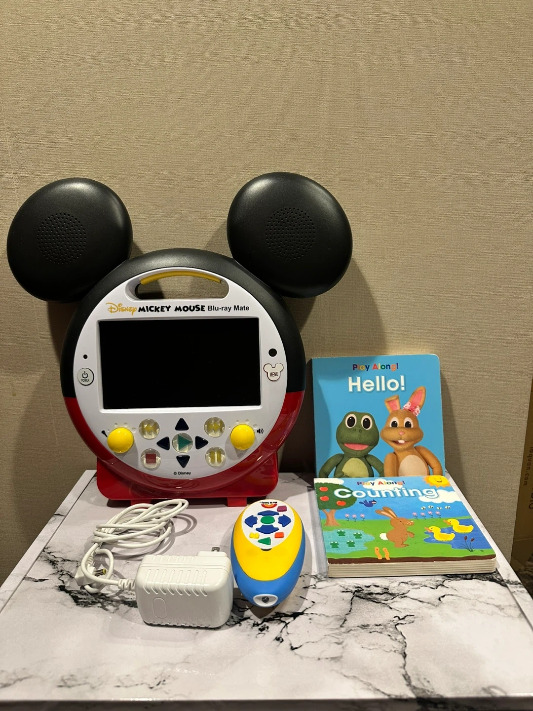 ディズニーのミッキーマウス Blu-ray Mateです 【情報】 ブランド:ディズニー 商品:Blu-ray Mate 【状態】 ・POWERボタンにキズあり 【付属品】 ・絵本2冊 (ディズニー英語の赤ちゃん用絵本) ・リモコン2種類 ・ACアダプター ・収納バッグ (車で使用する際の専用バッグ) 中古品であることご了承ください
