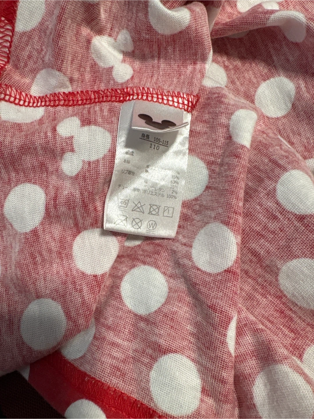 ディズニーのミニーちゃんのワンピースです。 ・サイズ:110(身長105-115cm) ・カラー:赤、黒、白 ・デザイン:水玉 中古品であることご了承ください。西松屋で購入したものになります。使用感はありますので、ご了承下さい。