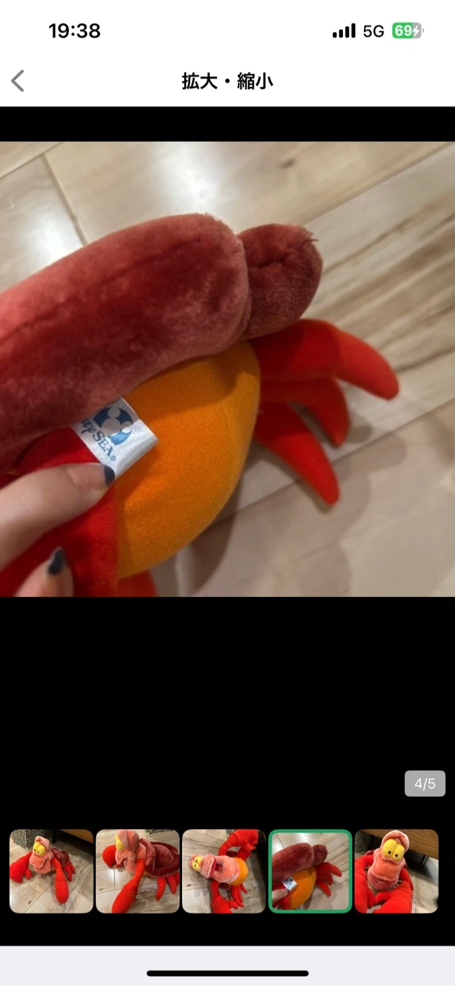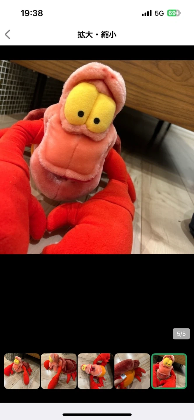 ディズニーのリトルマーメイド、セバスチャンのぬいぐるみです ・色:赤、オレンジ、ピンク ・状態:使用感少なめ 中古品であることご了承ください 手からお尻まで40センチ 足から足39センチ 高さ22センチ ディズニーシーで購入したセバスチャンのぬいぐるみです。自宅おもちゃ箱に保管しており、子供も使用していなかったため、比較的綺麗ではあります。新品とは異なりますので画像をご確認の上、ご検討ください。