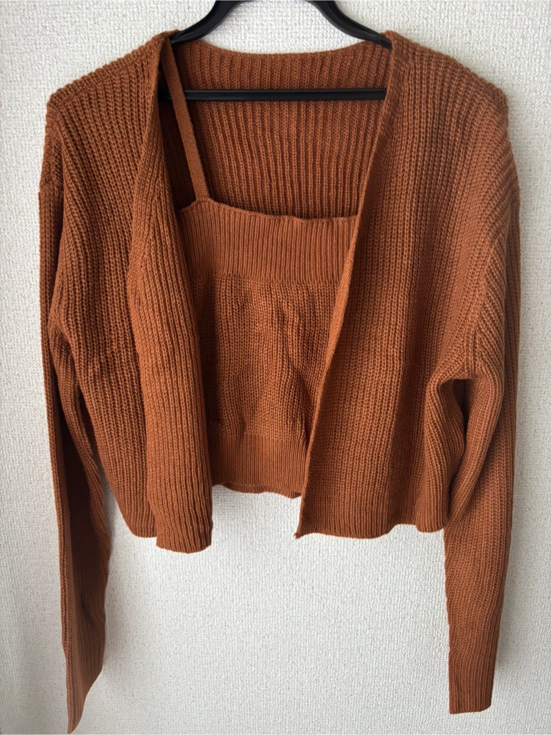 デイジーのカーディガンとキャミソールのセットです ・カラー:ブラウン ・サイズ:S ・素材:アクリル ・状態:使用感少なめ 中古品であることご了承ください