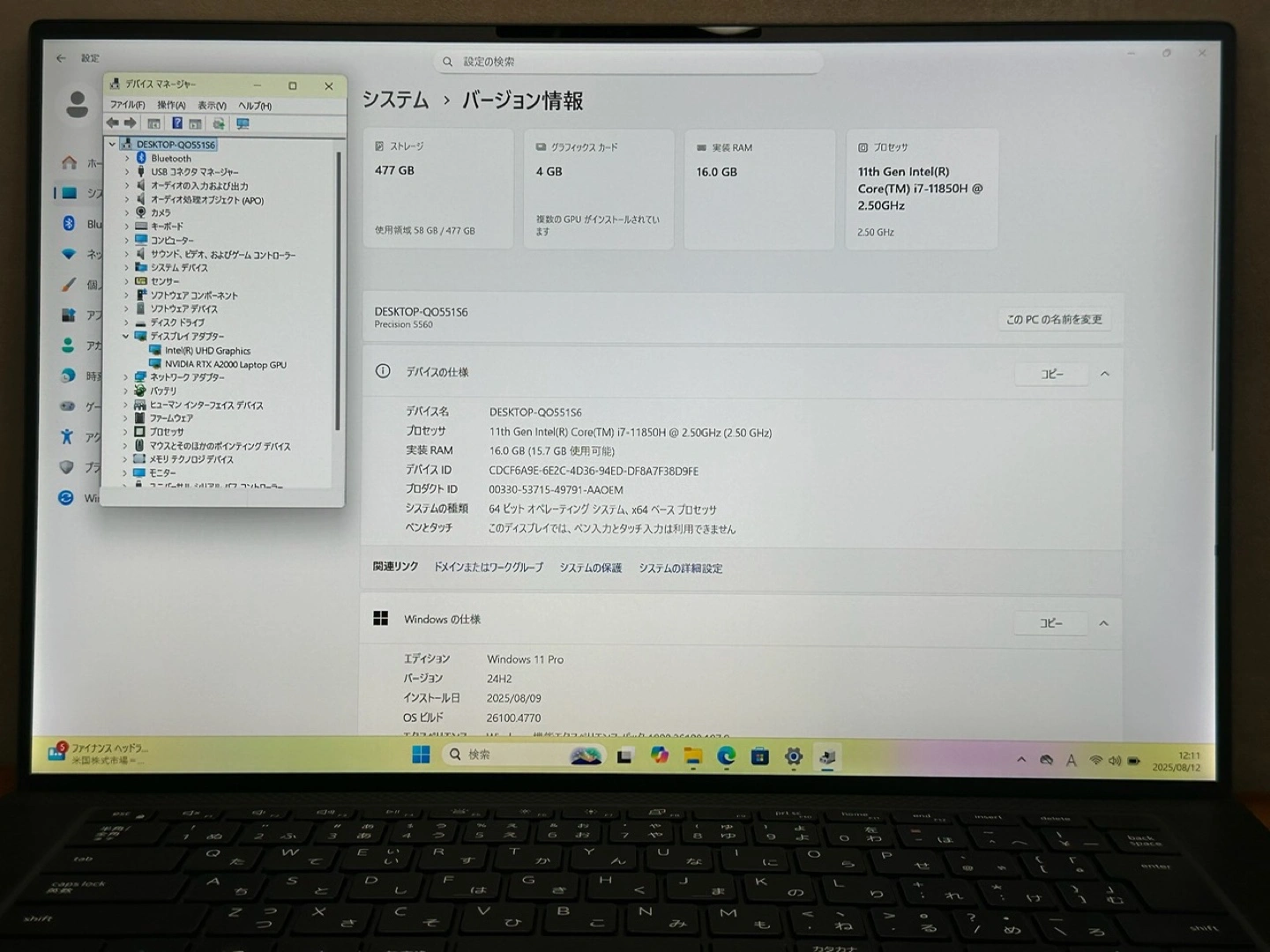 デルのPrecision 5560 ノートパソコンです 【情報】 ブランド:デル モデル:Precision 5560 OS:Windows 11 CPU:Core i7 11850H メモリ:16GB SSD:512GB グラフィック:GeForce RTX A2000 4GB 画面サイズ:15型 (1920x1200) 【状態】 ランクAB 保証期間1ヶ月 【付属品】 充電器 中古品であることご了承ください