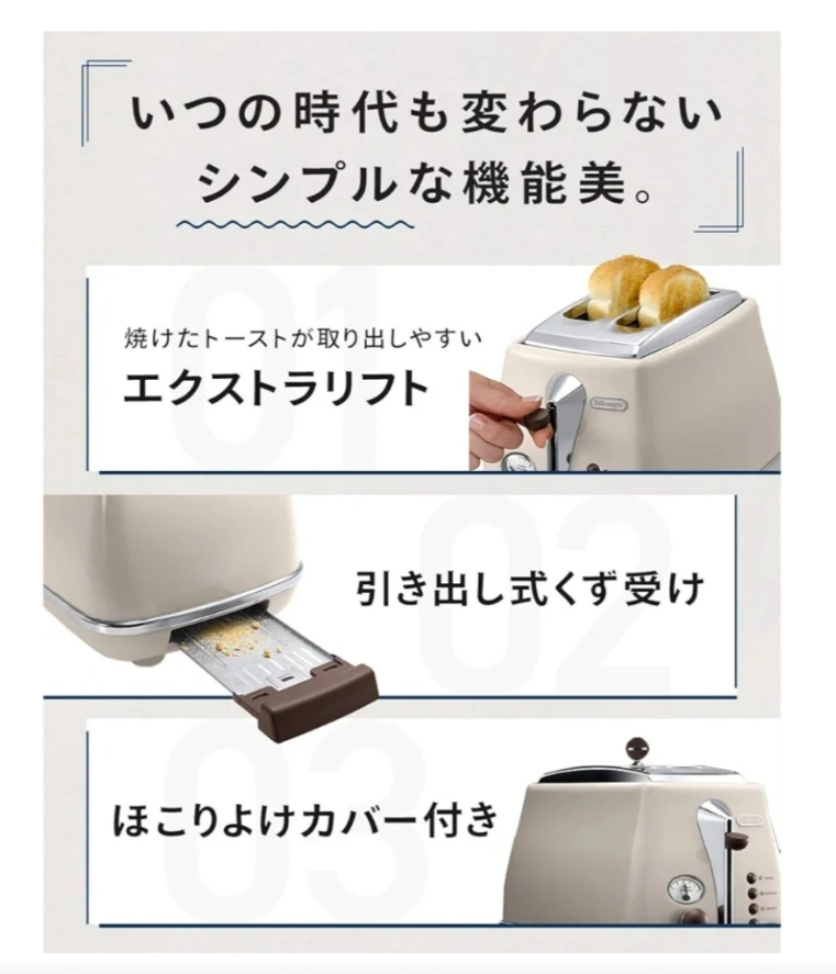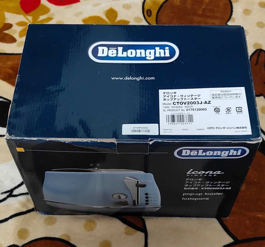 アマゾンでこの色は現在出品されていません。 価格も11,000円超え(送料別)で出品されています。 【情報】 ブランド:デロンギ 型番:CTOV2003J-AZ 種類:ポップアップトースター 色 : アズーロブルー 【状態】 箱付き 【サイズ】 19.5cm×33cm×21cm ●外はカリッと内はふんわり お好みの焼き加減を調節できます ●取り出しやすいエクストラリフト ●引き出し式でパンくずを掃除しやすい ●埃よけのフタがついています